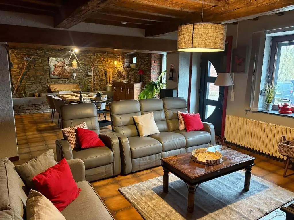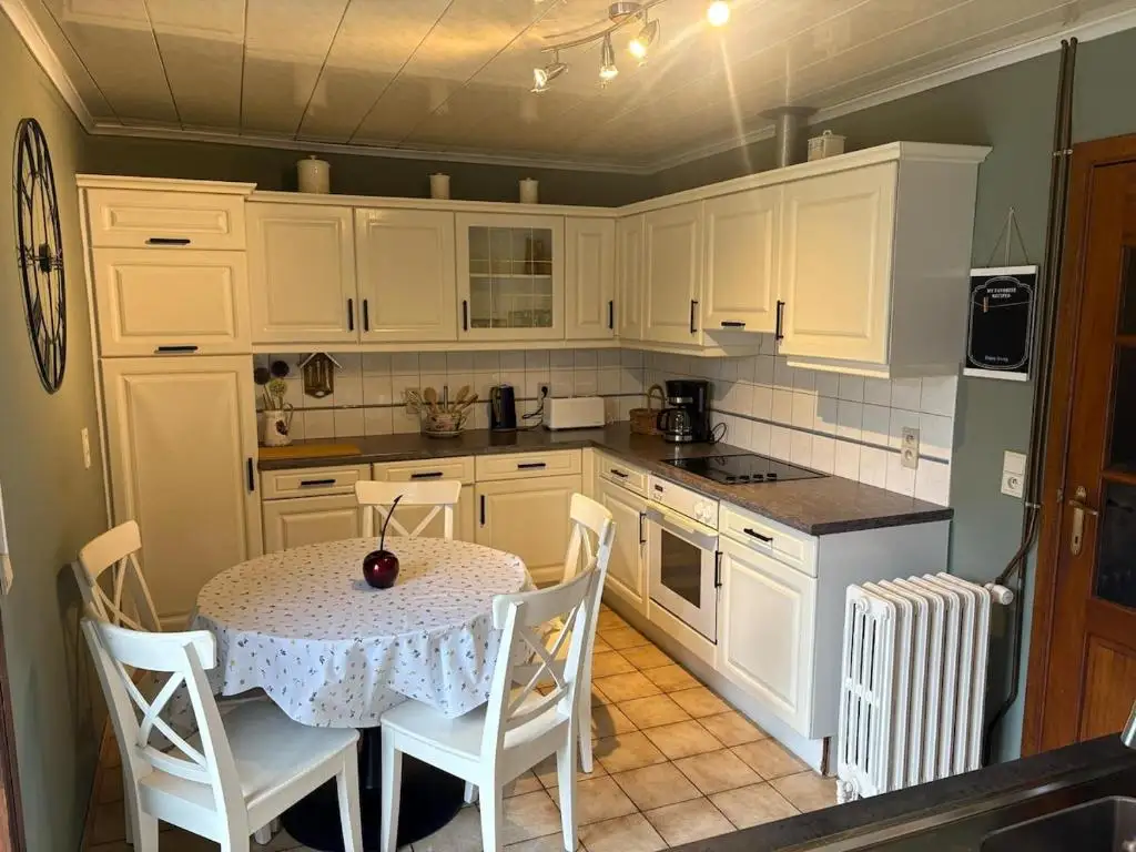 Charming family stone house in Presgaux. Located in the peaceful village of Presgaux, in the countryside, this charming stone house welcomes you between Couvin (7 minutes away) and Chimay (10 minutes away). Ideal for a family or friends stay, the cottage can accommodate up to 7 people + 1 child (folding bed available). You will enjoy a warm atmosphere and a relaxing setting.