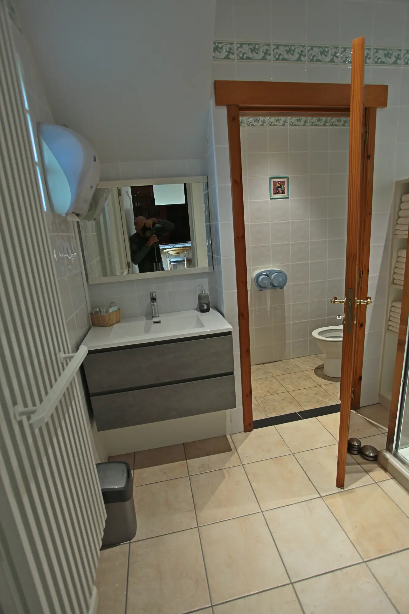 The bathroom has a shower, a toilet, a hairdryer, and necessary items (toilet paper, hand towels…). Bed linen and towels are provided, as well as cleaning products: you can arrive with a light heart.
