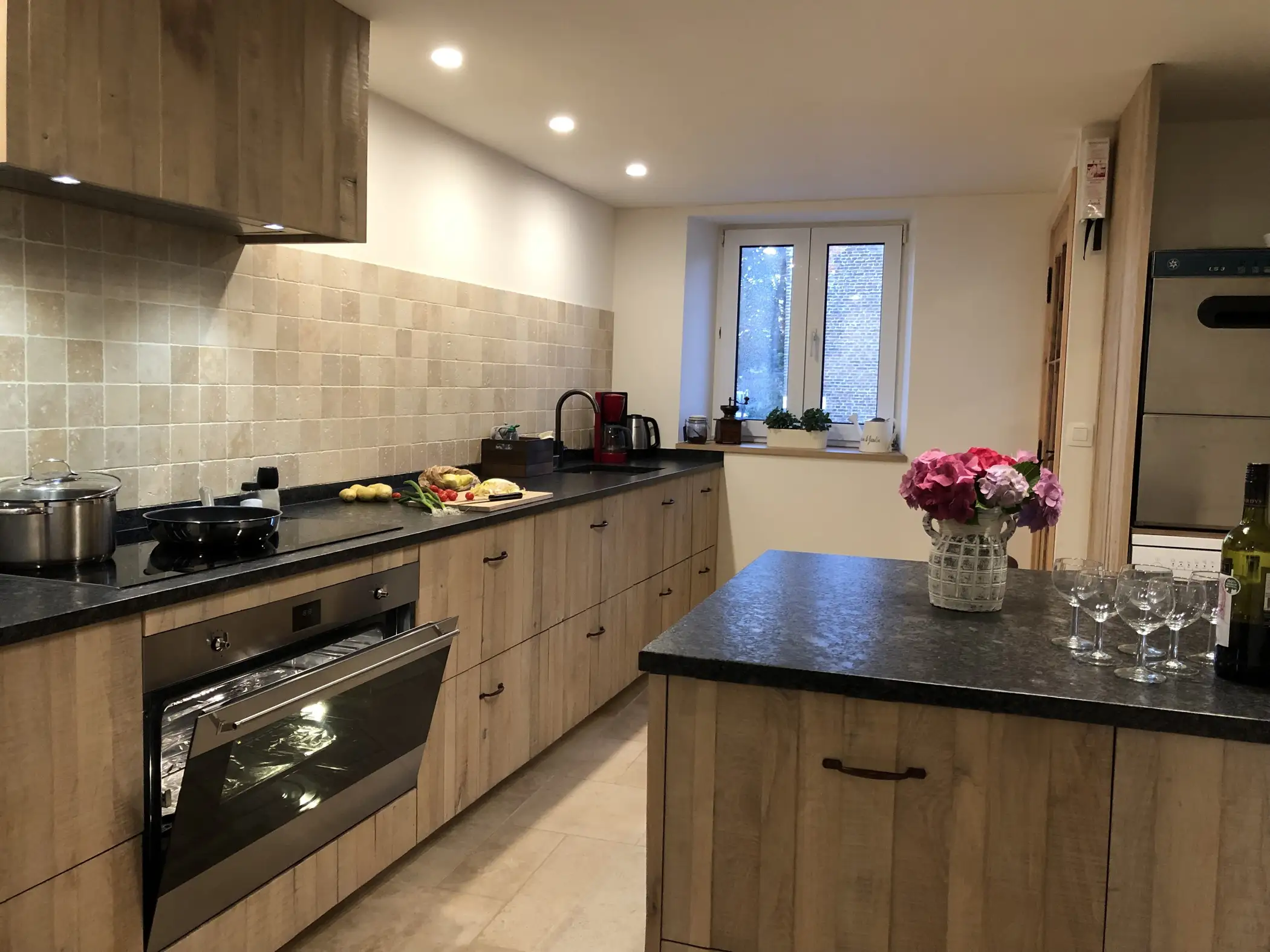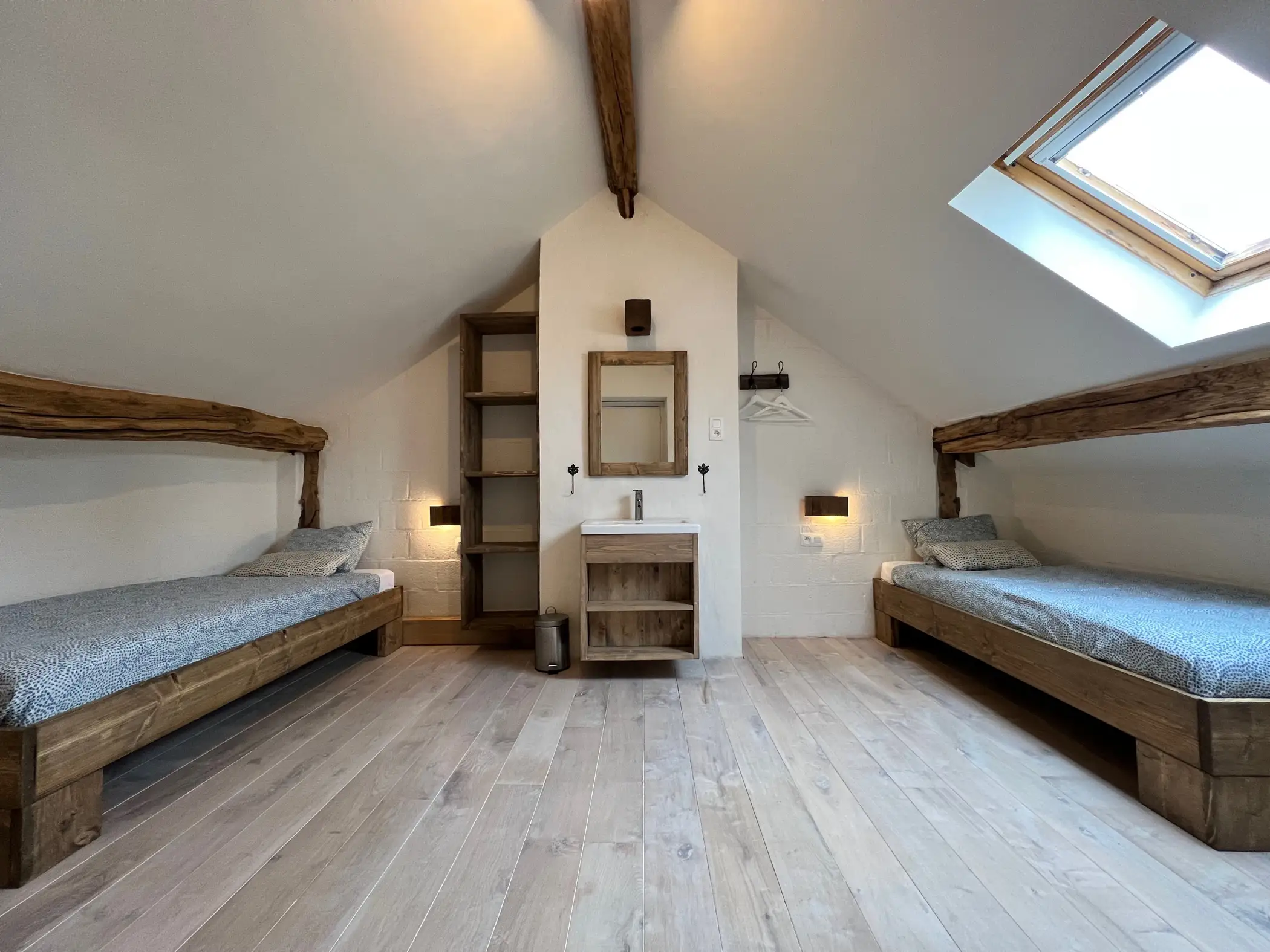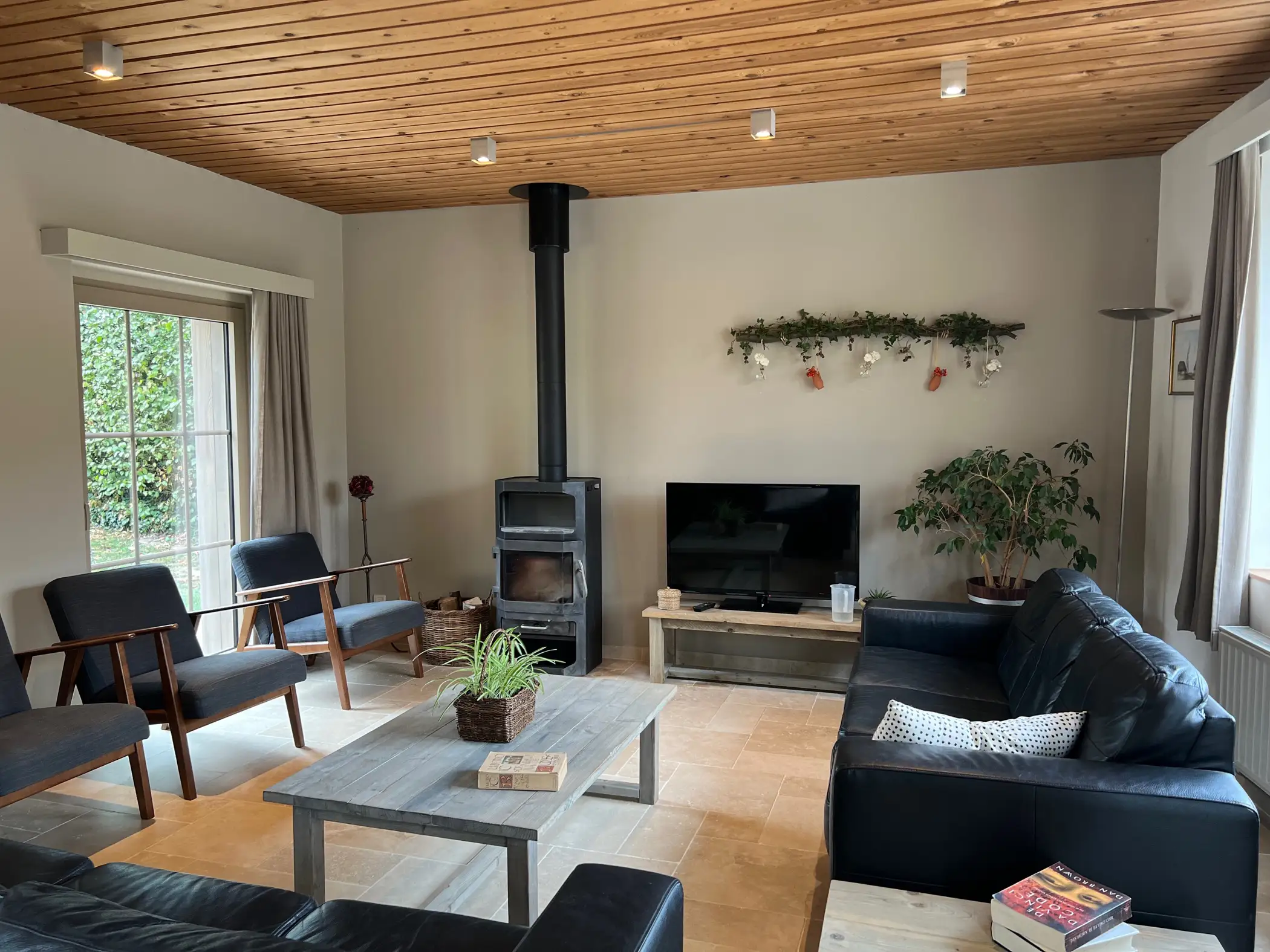 A large window gives direct access to the private terrace and the garden from the living space. The large garden has a pétanque court, a children’s playground and a badminton court.