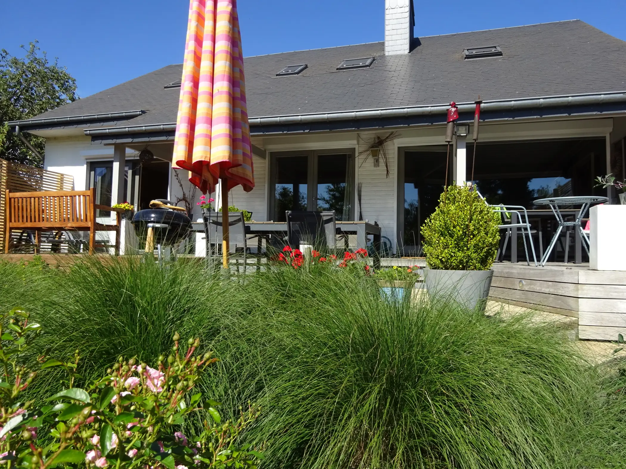 The Zen bedroom on the ground floor is well appreciated for its comfort, the living area, and private terrace with a view of the lovely garden.