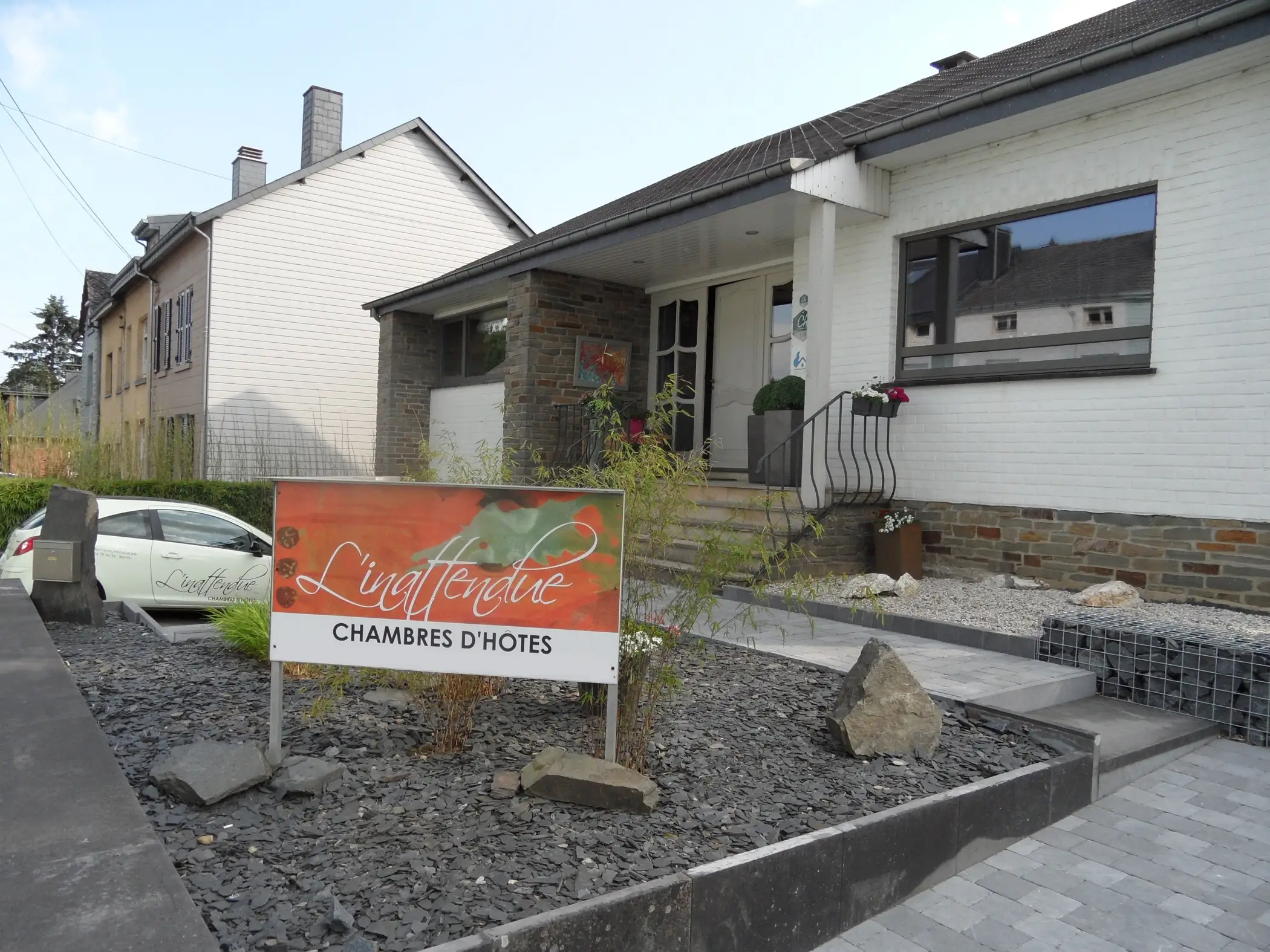 So many unexpected things await you at L’Inattendue… Relax because L’Inattendue is a guest house designed for your well-being starting with the cozy and modern decor. But the second surprise is that your host Christiane has been a professional in care since 2014, trained in innovative care approaches (Mindfulness, Foot Reflexology, Tibetan Bowl,…). She will help you slow down during your stay to recognize, welcome and release stress, anxiety, fatigue,… Living this experience is indescribable with words, it must be experienced. But one thing is certain, it will awaken an inner flame in you, thanks to the bond you will form with your host… It is the unexpected experience in every sense of the term. All in one, a spectacular yet gentle disconnection to feel and see the possible change. Close to home, no need to go to the other side of the world to disconnect. Located in the small town of Bertrix (in the Ardennes) near Bouillon and Gaume. L’Inattendue offers 3 cozy rooms with private bathrooms that you will find comfortable. A beautiful garden and a very nice south-facing terrace will allow you to relax. The favorite of the hosts is the ZEN room with its lounge and private terrace located on the ground floor and very soon a small integrated kitchen will be set up for longer stays. Like a retreat to disconnect from daily life (stress, fatigue, illness or regenerating retreat for caregivers of sick loved ones). To be continued! You also have the 2 YIN/Yang rooms on the first floor designed to communicate (modular) to accommodate 1 to 4 people while maintaining comfort with 2 walk-in showers. The rooms are well defined to maintain privacy for everyone. So, welcome to L’Inattendue!
