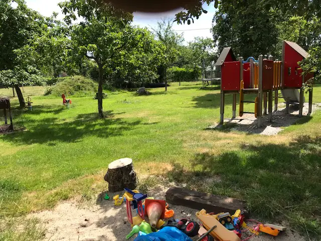 There is a vegetable patch and garden with lots of things to play with for your children.