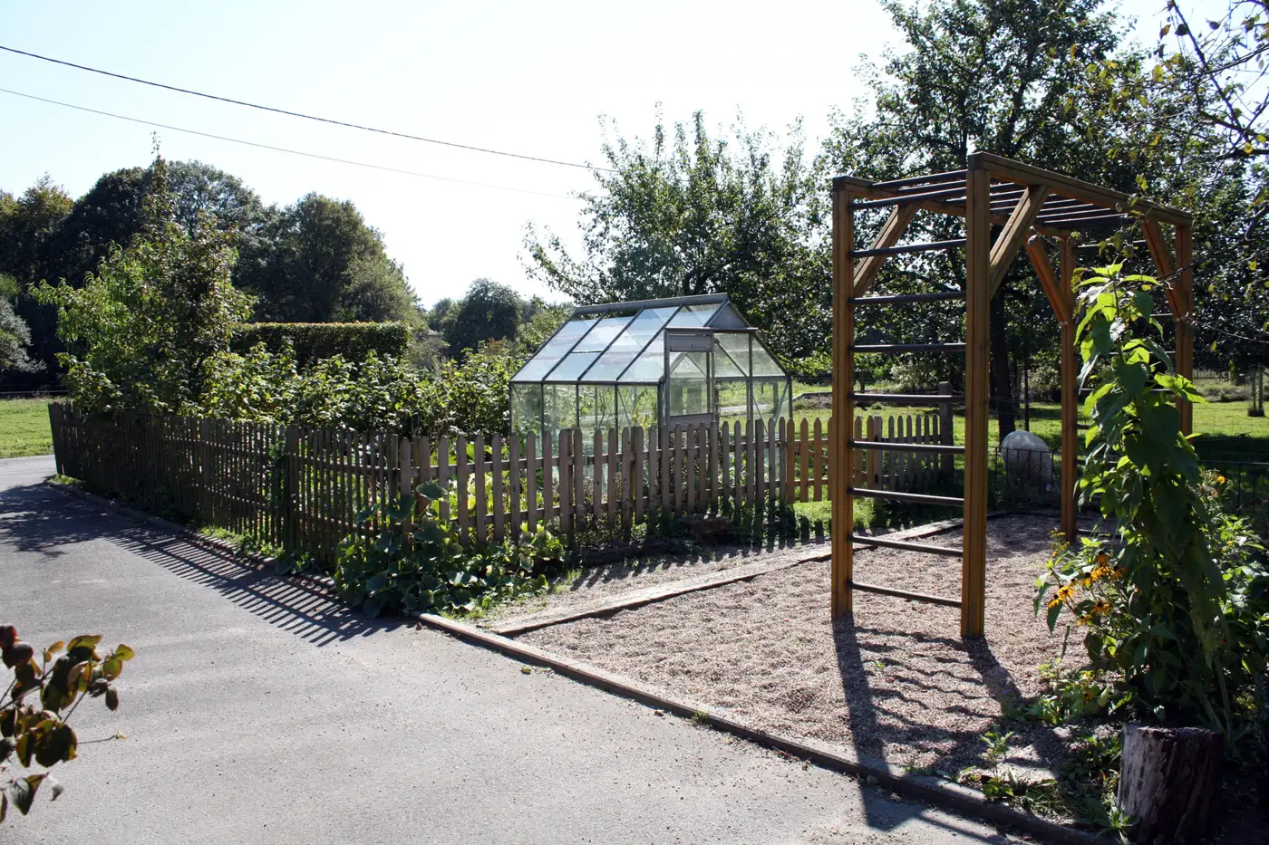 This holiday home is labelled “clé verte” (green key) due to the presence of solar panels for hot water, the rainwater collector, photovoltaic cells, composter… organic vegetable patch and orchard. The place opens onto the countryside with the presence of domesticated animals such as chickens, sheep, donkeys, horses and more. There is lots of wild flora and fauna in the surrounding area. The nearby surroundings are particularly adapted to families with young children and less young ones. There is a large playzone for kids as well as possible access to private structures (subject to terms and conditions) such as the tennis court, the bowling green and the swimming pool/lake.
