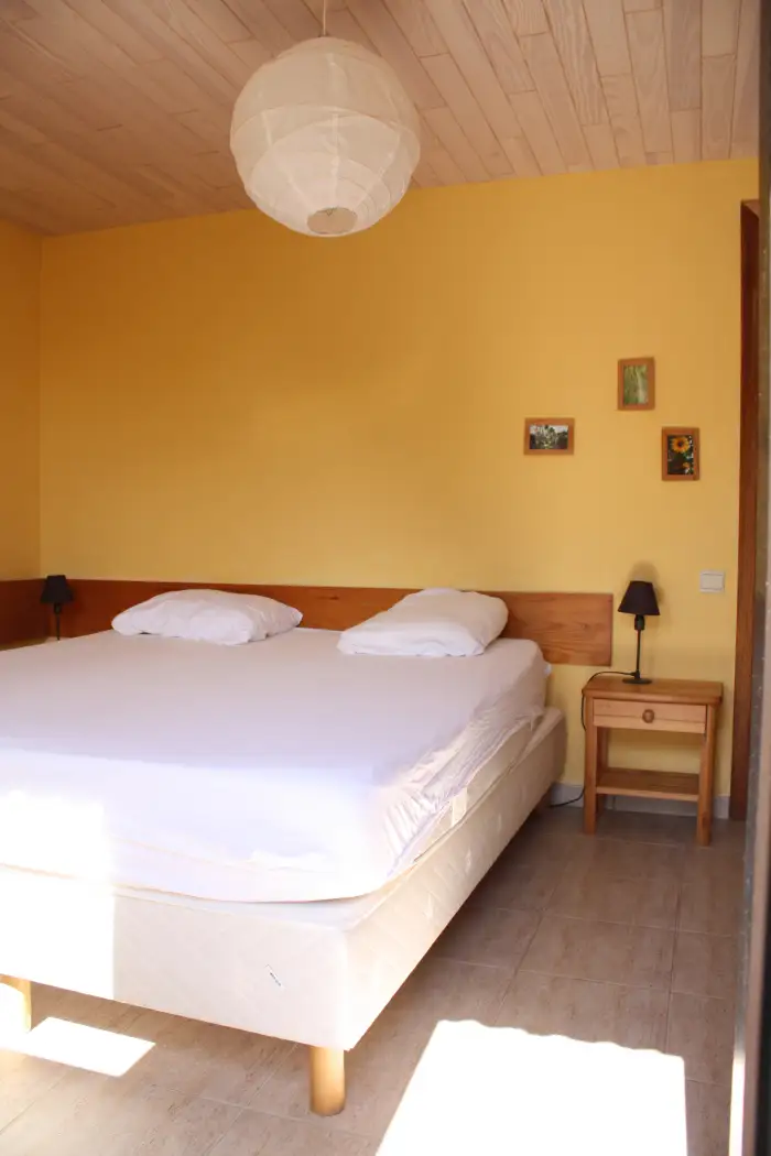 Secluded location, very quiet at the edge of the woods. Ground floor adapted and equipped for people with reduced mobility. Spacious individual terraces, easy access and parking. Numerous accessible walks. Commitment to sustainable tourism; Green Key labeled lodging; solar panels for hot water production, rainwater recovery, photovoltaics, compost… Organic orchard and vegetable garden, open environment to the countryside, presence of domestic animals (chickens, sheep, donkeys, horses…). Wildlife and flora in the surroundings. The surroundings of the accommodation are particularly suitable for families with young and older children: vast play area for children, possible access to private facilities (under conditions) tennis, petanque, swimming pool/pond.