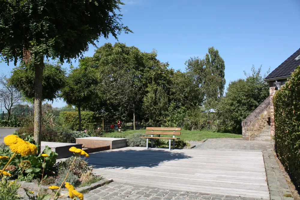 Nicely tucked away near the edge of the woodlands, you can find a dwelling on the ground floor level that is perfectly adapted for guests with reduced mobility. There are also large individual terraces with easy access to the parking spaces. There are many accessible walking paths.