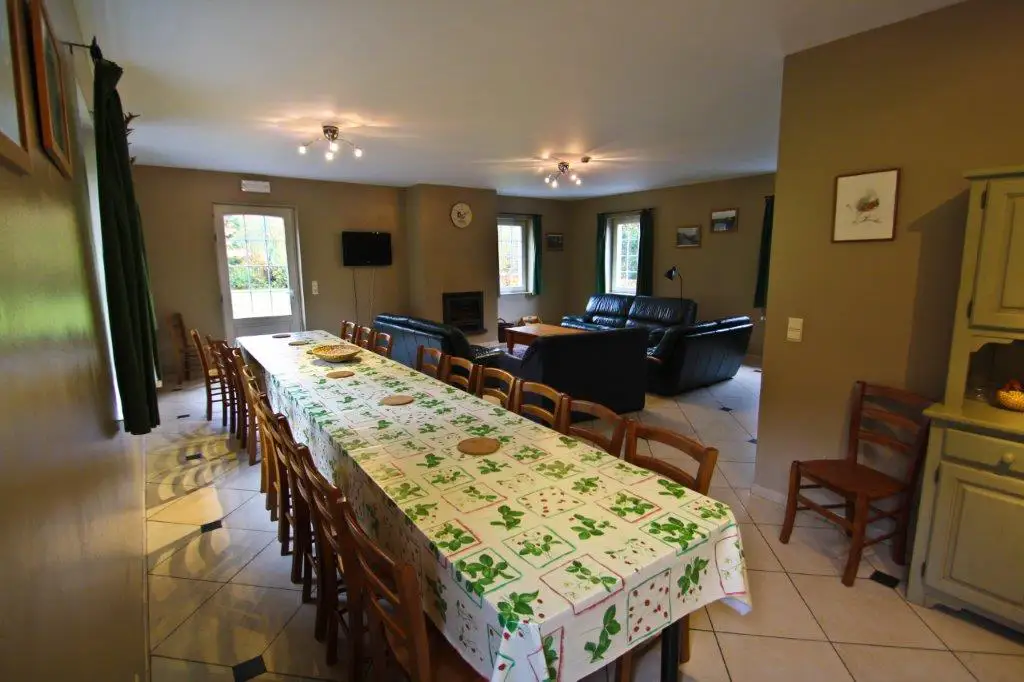 In one of the most beautiful villages in Wallonia, this cottage includes a very large living room with its open fire, a large dining table that can comfortably accommodate all members of the group, a fully equipped kitchen, 7 twin bedrooms and a large bedroom with 6 single beds, 3 bathrooms and 2 private showers. Outside, you will find a large table with a barbecue to enjoy unforgettable evenings under the stars and a carport. This magnificent property, completely restored and completely isolated, is located in one of the “Most Beautiful Villages of Wallonia” and near the Sosoye nature reserve. At the edge of the woods, with its very large garden, it will delight you with its charm, location and the great calm of the place. Comfort, conviviality, nature, incredible views are the keywords of this place.