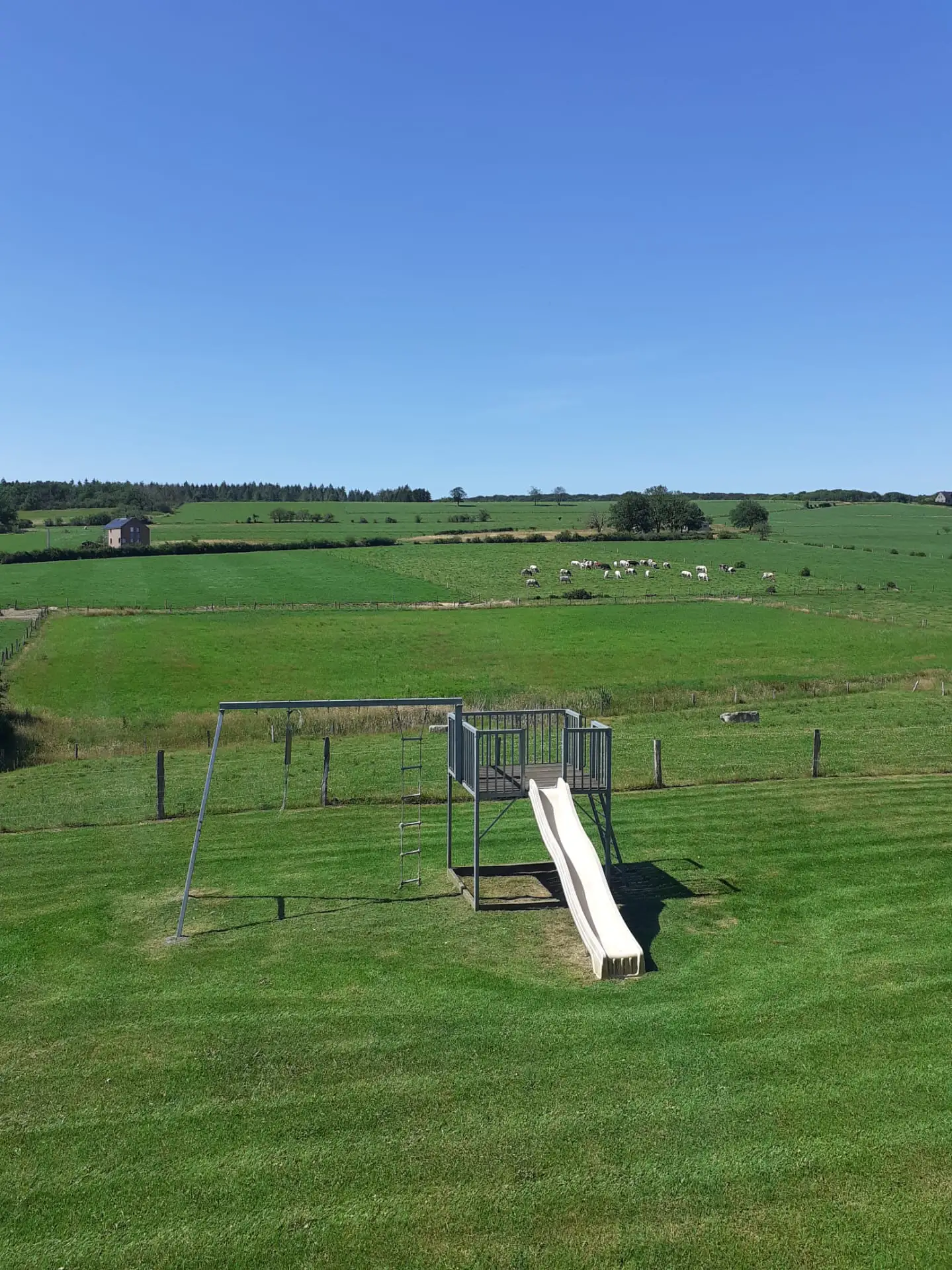 A privileged location Ideally located on the heights of the smallest town in the world, in a small village in the middle of nature. Countryside atmosphere. Forget the stress. Here, everything encourages you to take a unique moment of relaxation. A bucolic setting with garden, outdoor games, swing, slide, petanque, garden furniture, barbecue… Spacious living areas. One room for people with reduced mobility on the ground floor with private bathroom.