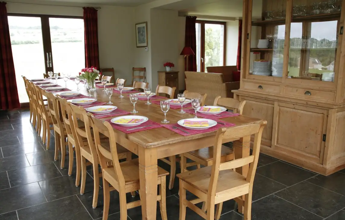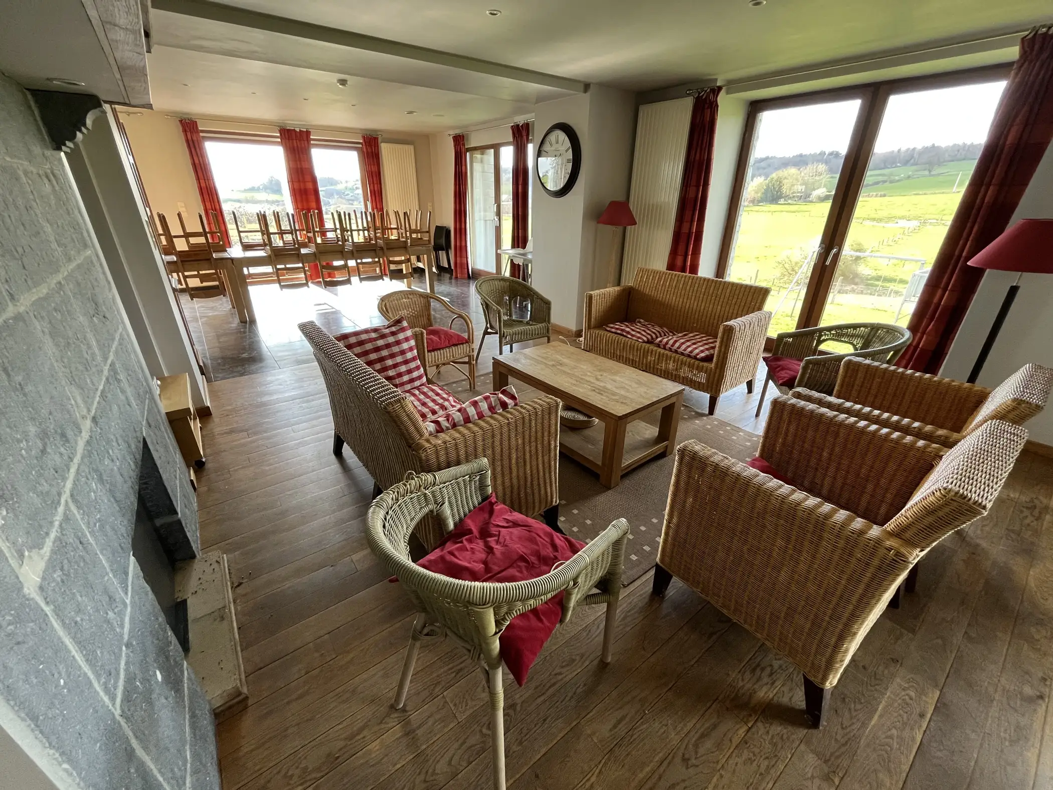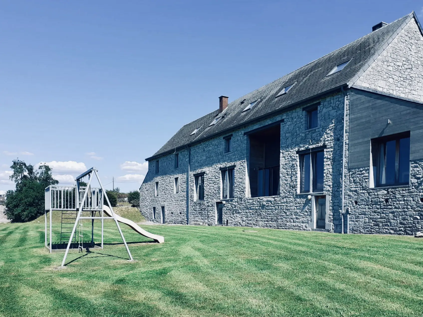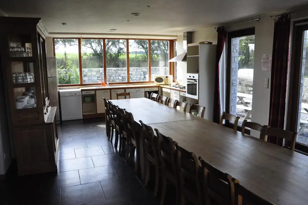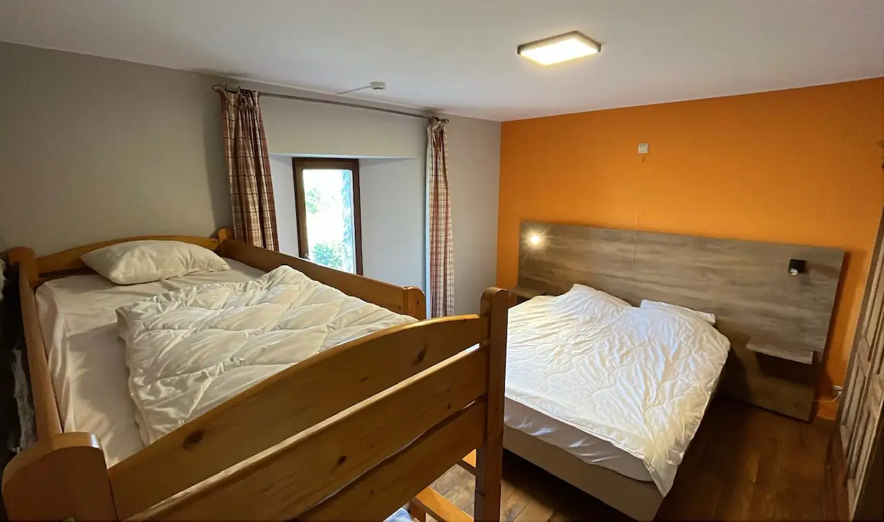 Cottage for 24 people with 8 bedrooms, 8 bathrooms in local stone in the middle of nature, spacious, bright house, 2 km from the old town of Durbuy facing south. Ground floor: 1 bedroom – 1 bathroom. 1st floor: 3 bedrooms – 3 bathrooms. 2nd floor: 4 bedrooms – 4 bathrooms.