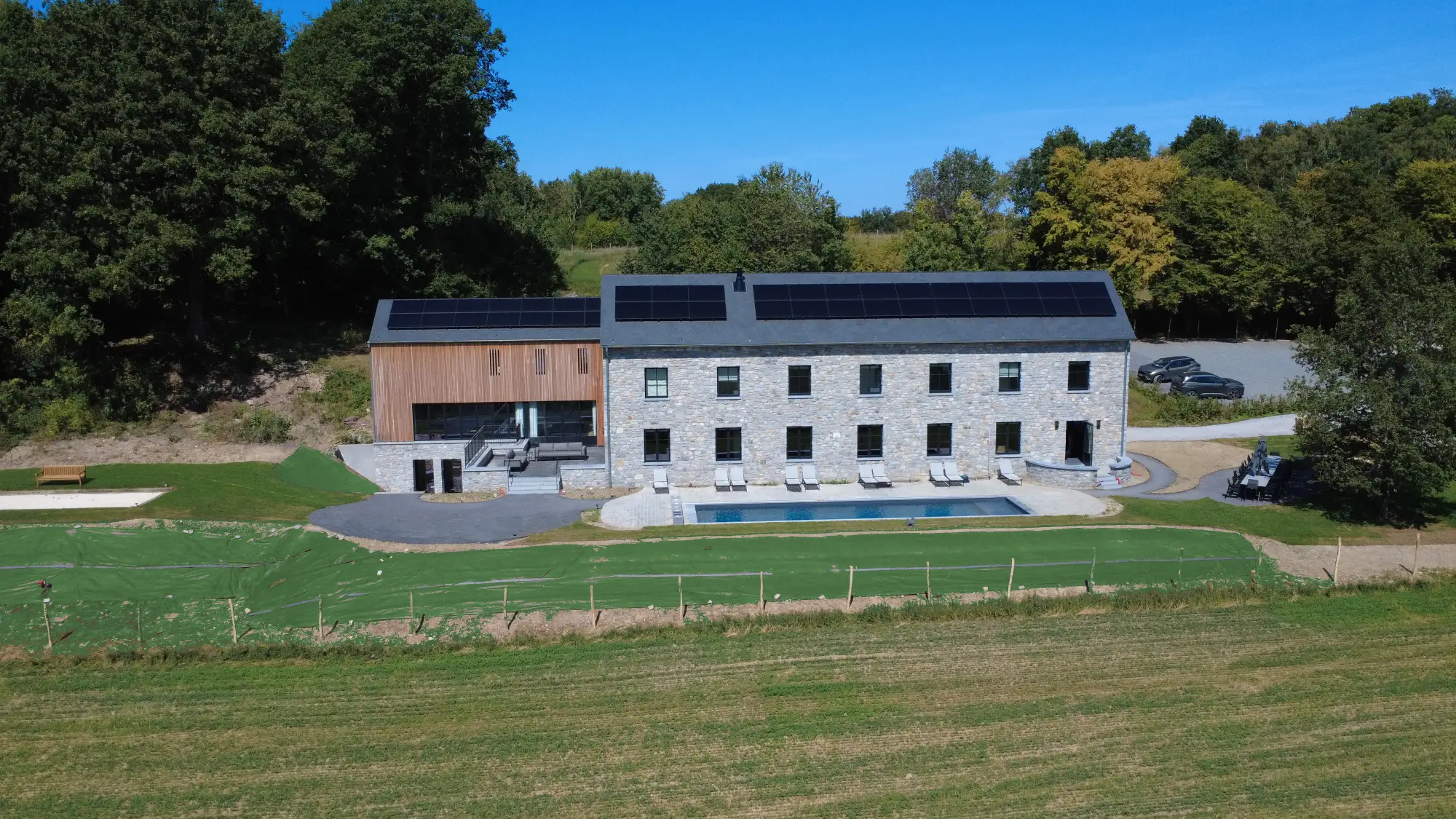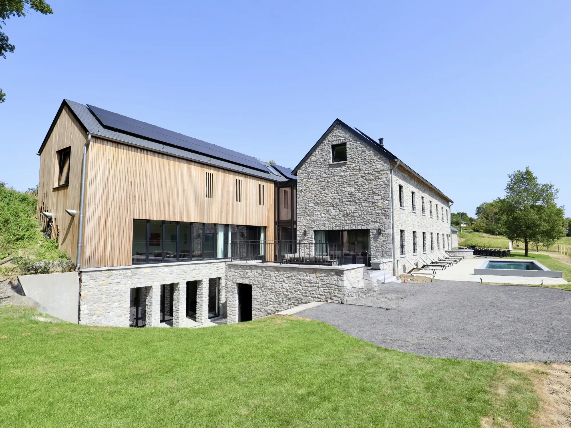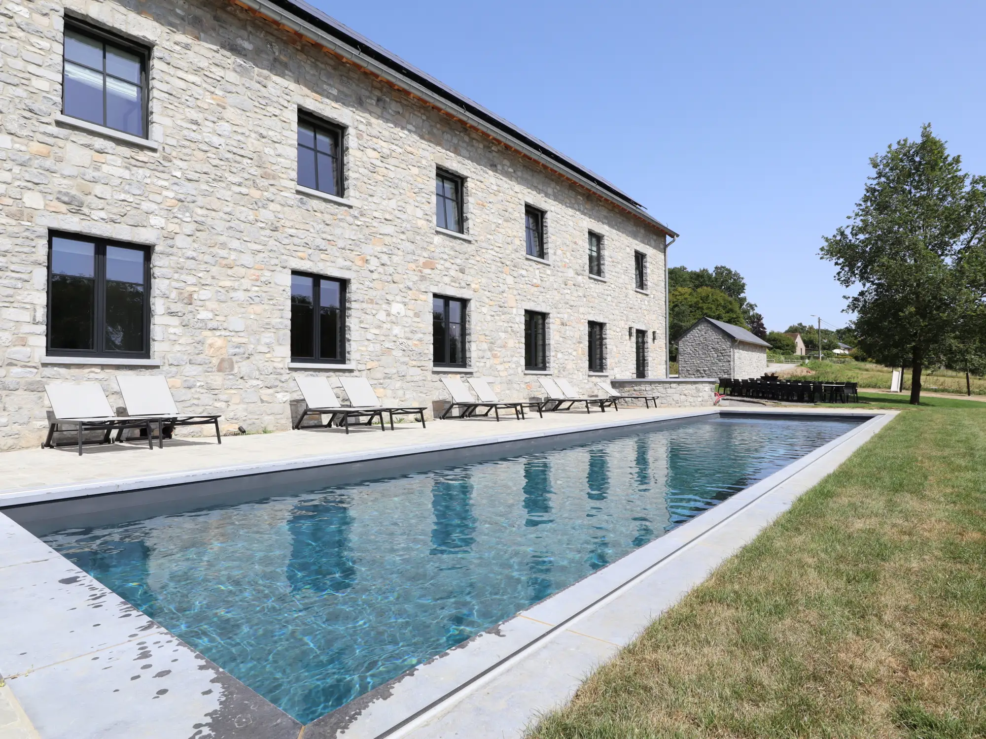 Welcome to Ferme Valentour, a high-end holiday cottage that can accommodate up to 26 people (24 adults + 2 babies), ideally located in Haltinne (Gesves), in the heart of nature, without vis-à-vis. Perfect for family stays, with friends or company seminars. The cottage has:- 11 rooms, all with private bathroom and toilet- 2 spacious lounges for relaxation- A 50 m² meeting room- A wellness area with sauna, fitness room, shower, toilet and changing room- An outdoor swimming pool of 14 meters- A petanque court- Playground for children- A cold room- A laundry room- Private parking for 20 vehicles- A breathtaking view of the countryside, without immediate neighbors (nearest house at 160 m)A peaceful and comfortable place to recharge, reconnect and fully enjoy your stay.