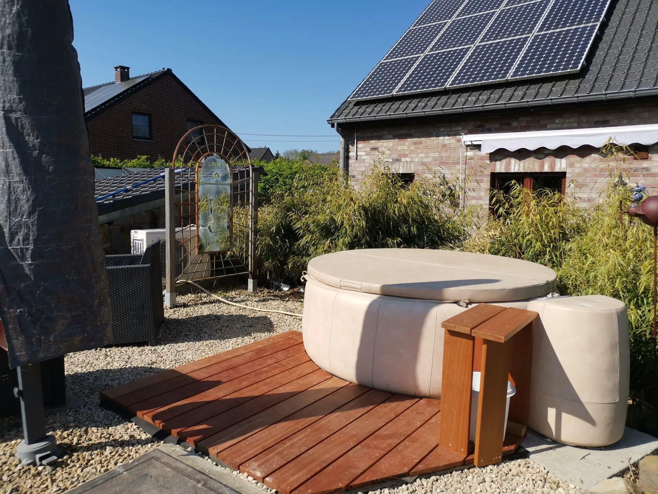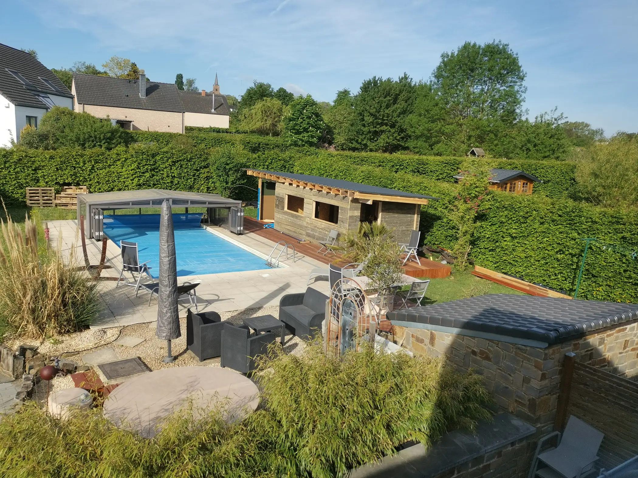 The cottage is located in the beautiful valley of Namur with a space dedicated to relaxation and unwinding. It is located a few minutes from the capital of the Walloon Region and the majestic citadel. This cottage has many amenities such as a heated outdoor swimming pool covered by a telescopic shelter, terraces, plancha barbecue, sauna, internet connection, private garden with terrace, parking, home cinema, ping-pong table, petanque court, bow and arrow, and more.