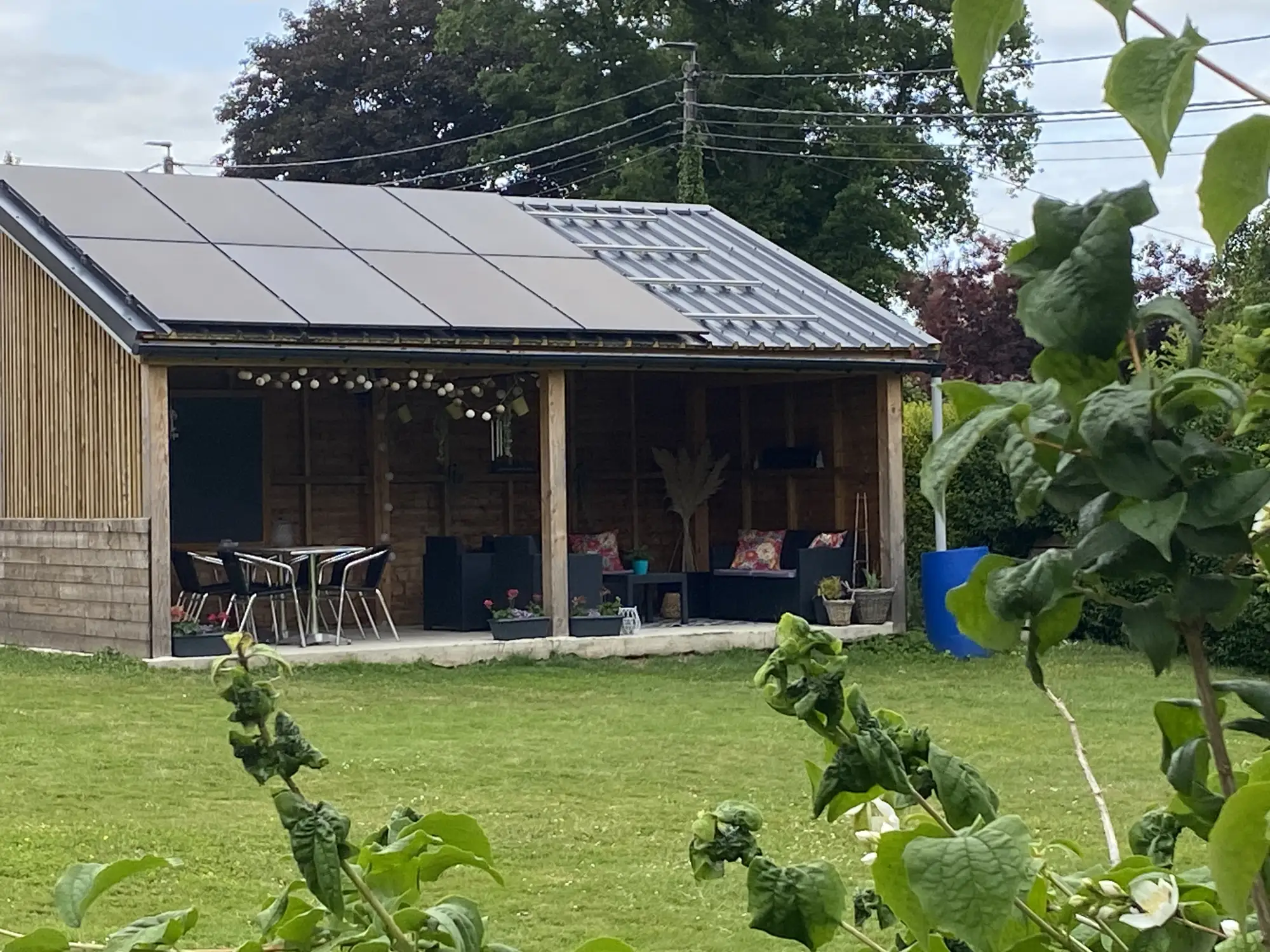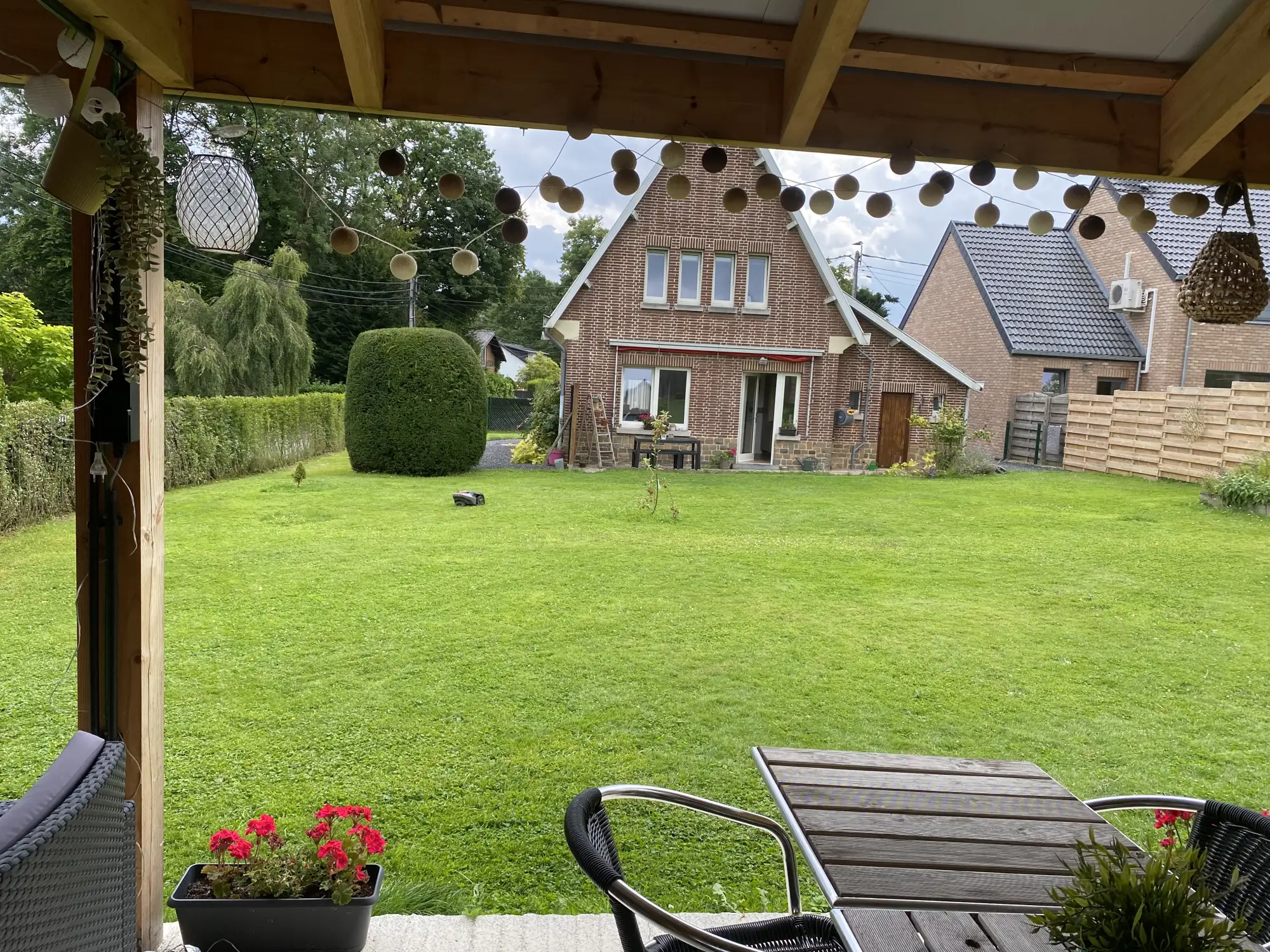 The garden (fenced) has a shelter with terrace and lounge area and a closed parking space.