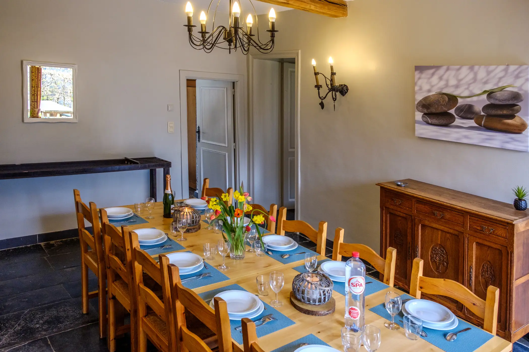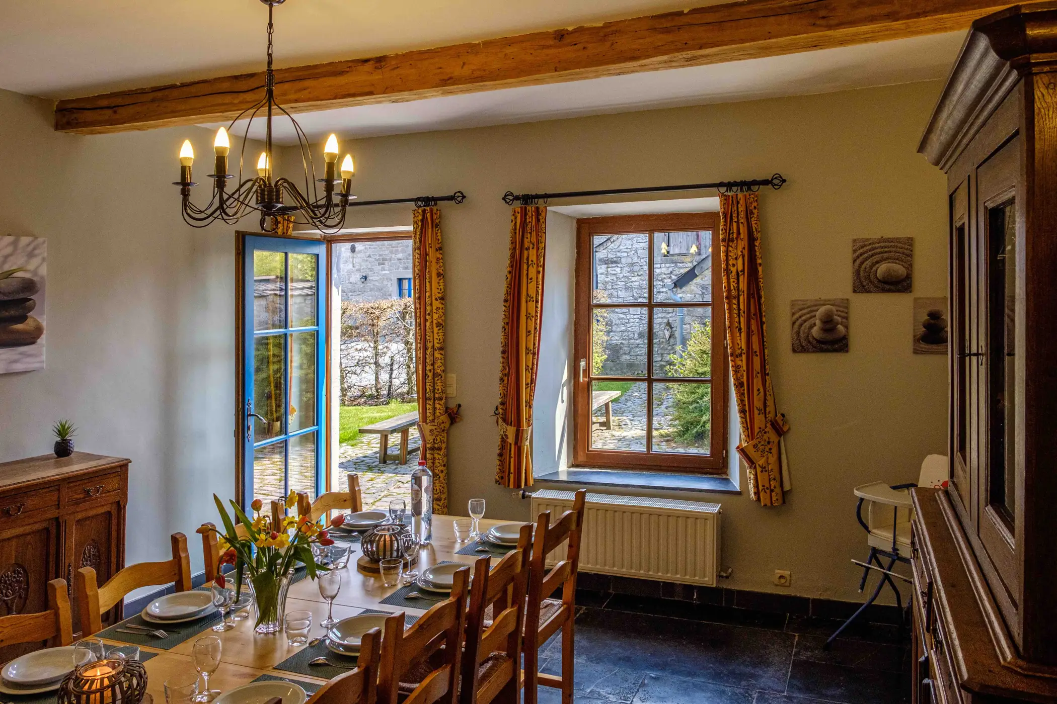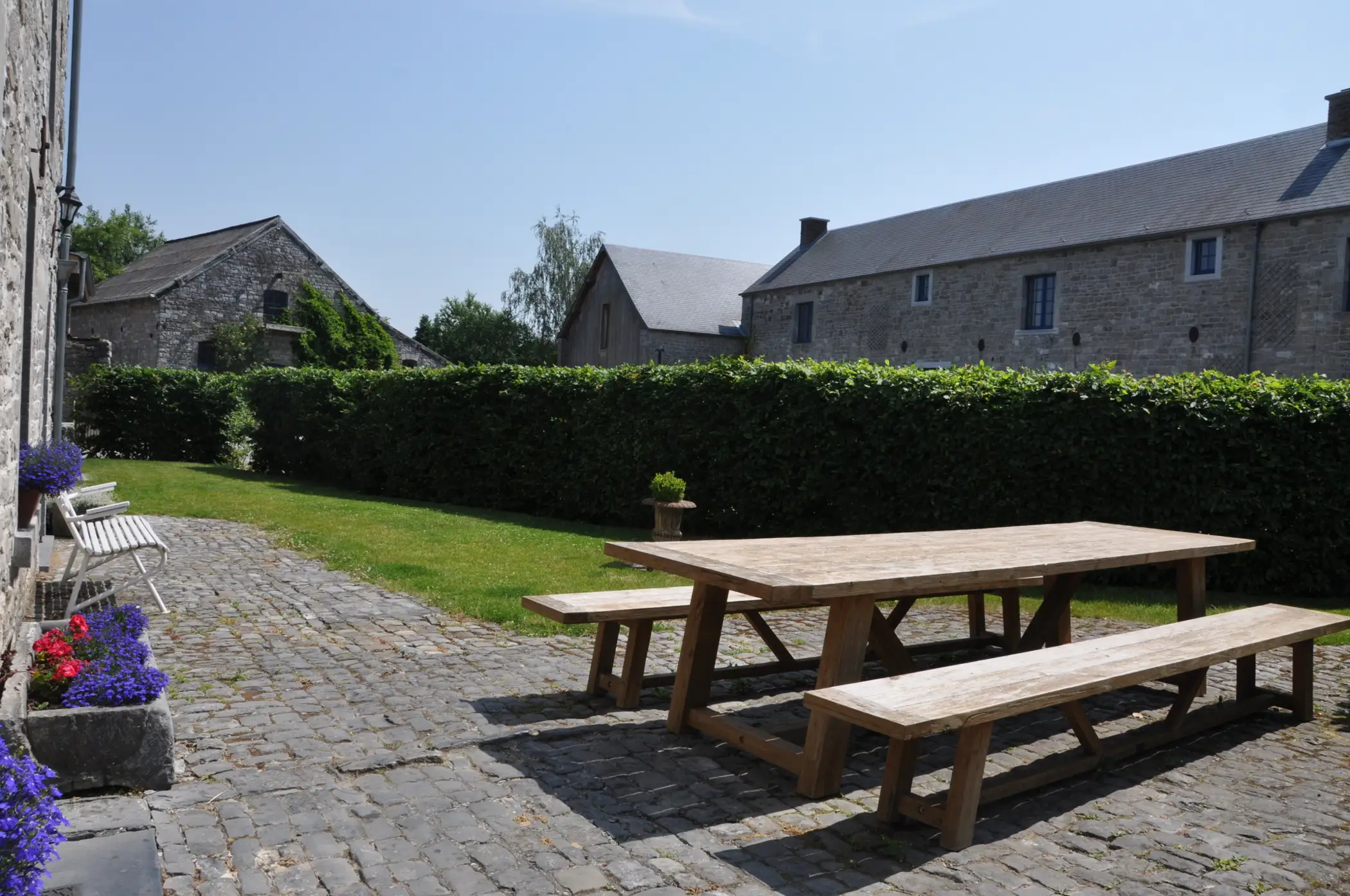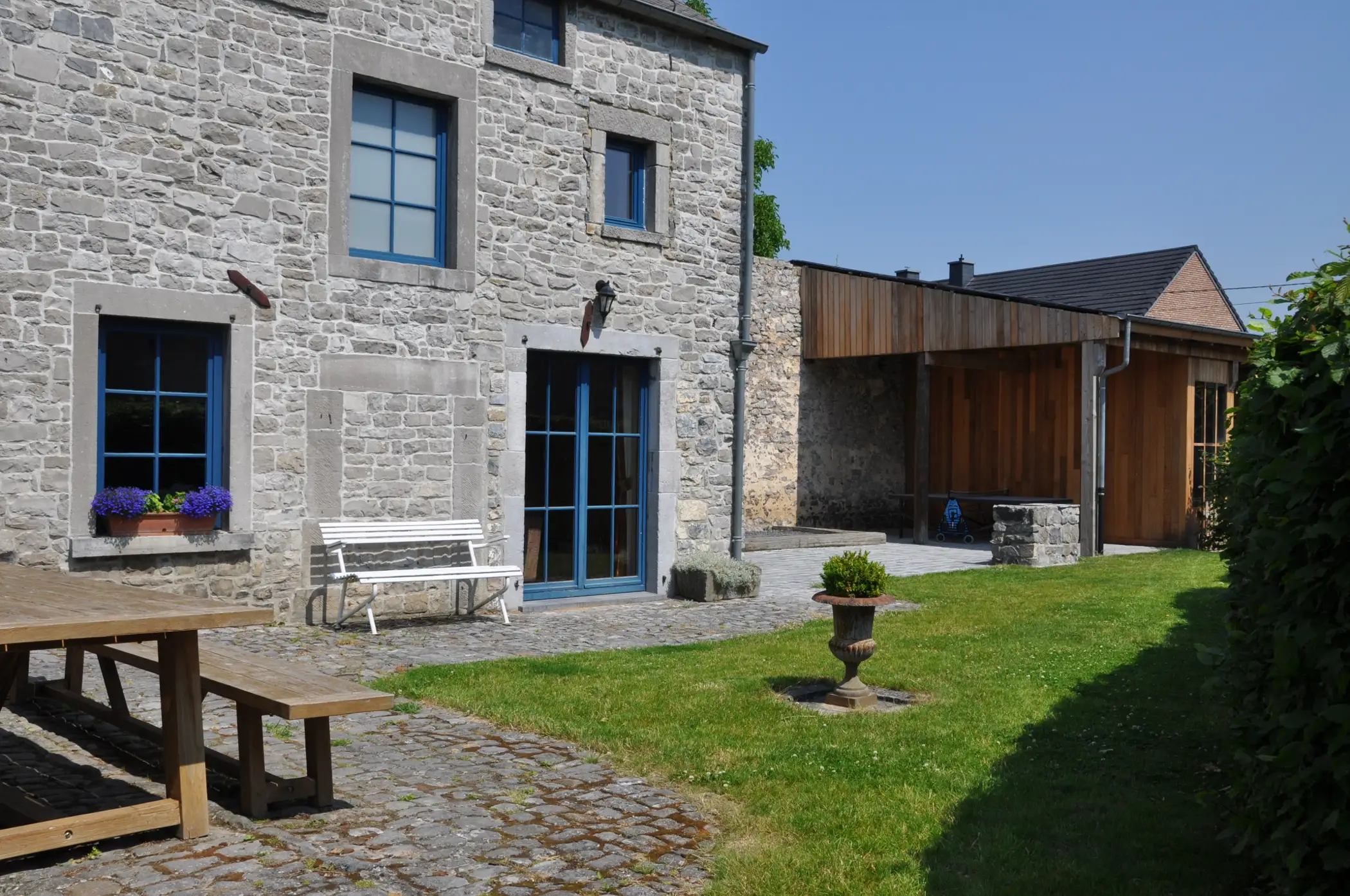 “La Petite Ferme Bleue” is a great rural holiday home that can hold up to 12 guests and is found in one of the most picturesque villages of Wallonia. This building is made of local blue stone dating back to the start of the 18th century and located within the walls of a really beautiful square-shaped farm. This place is perfectly restored to reflect the style of the time of its construction. It is located at the edge of a calm village in the end of a little cul-de-sac laneway after the end of a walking path. Everything here is in the heart of the countryside and is located only 6 km from Namur, the capital city of the Wallonia region where you have everything else you need.