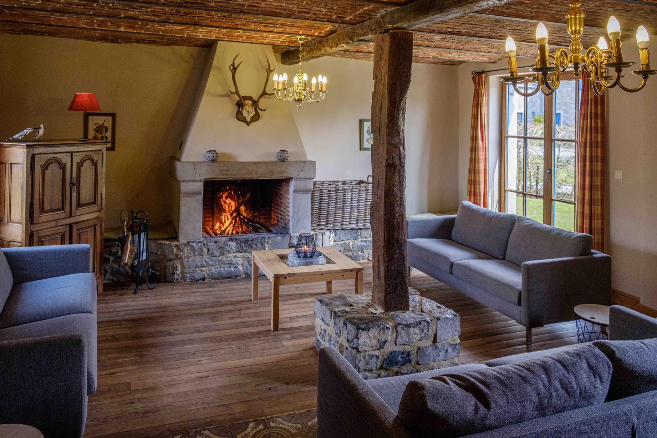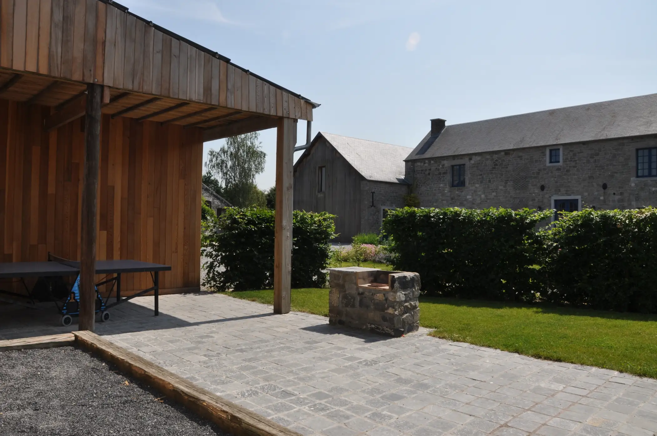 The holiday has all the necessities required to make your stay even better and easier. The large equipped kitchen allows many people to lend a hand in the preparation of meals without stepping on each others’ feet. The dining room has a long table for you to enjoy your meals all together at once. The open fire and the living room chimney creates a warm setting for the winter evenings while the garden is made to help you make the most of the summer evenings. The garden is completely closed and south facing. There is also a partially covered large terrace . Here you can enjoy table tennis, petanque, barbecues and relaxing on the garden furniture.