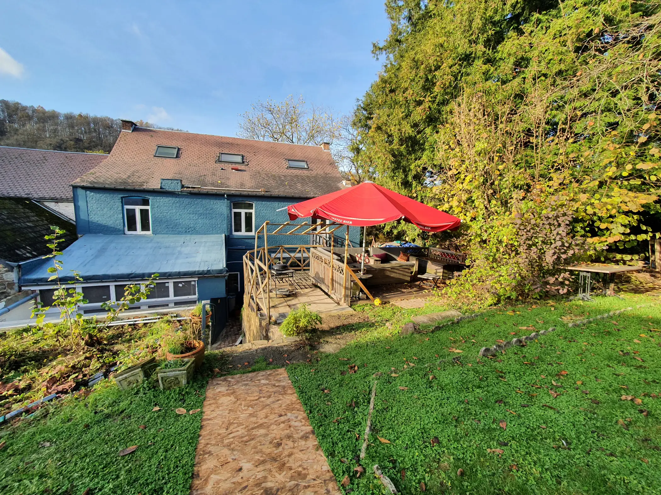 A cocoon to recharge with family or friends. An old hotel completely restored, it offers spacious rooms, a small wellness area, large living rooms, a beautiful terrace, a large garden and a (mini) swimming pool (from June to September). In the heart of the Meuse Valley, this 9-person cottage is a true cocoon to recharge with family or friends. Former postal relay in the 19th century, then a small hotel throughout the 20th century, it has been completely restored for absolute comfort and tranquility. It offers spacious rooms, numerous bathrooms (including a Wellness area with a 2-person jacuzzi and a small sauna) and large living rooms. But also a beautiful terrace, a garden with an outdoor (mini) swimming pool, large fruit trees and a vegetable garden. Ideally located a stone’s throw from Lustin train station, the Gîte de la Poste awaits you after your walks or visits to the many unusual sites between Namur and Dinant. The region is particularly known for its natural spaces, small valleys, heritage and is full of routes, paths and walking trails. Recharge your batteries!
