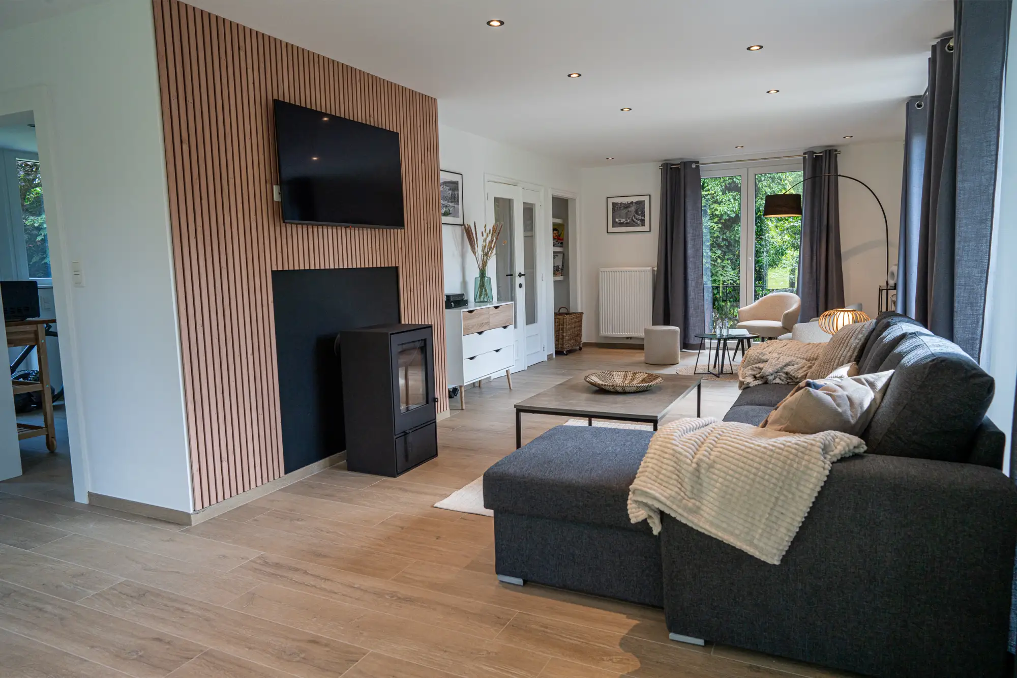“At Jojo – Rural Cottage” is a fully renovated villa, which can accommodate 4 to 6 people, located on the heights of Spa in a green setting. This villa of +/- 130 m2 has, on the ground floor, an entrance hall, a toilet, a large and bright living room with dining area, living room (with a sofa bed for 2 people), reading/relaxation area and a fully equipped kitchen. Upstairs, there are 1 double bedroom, 1 bedroom with 2 single beds (which can be made into a double bed), 1 bedroom with a baby cot and a bathroom (walk-in shower). In the basement, there is a large private garage with a laundry area, as well as a space dedicated to bike maintenance. Outside, there is a large garden and a southwest-facing terrace, a large private driveway with an electric charging point and 4 outdoor parking spaces.