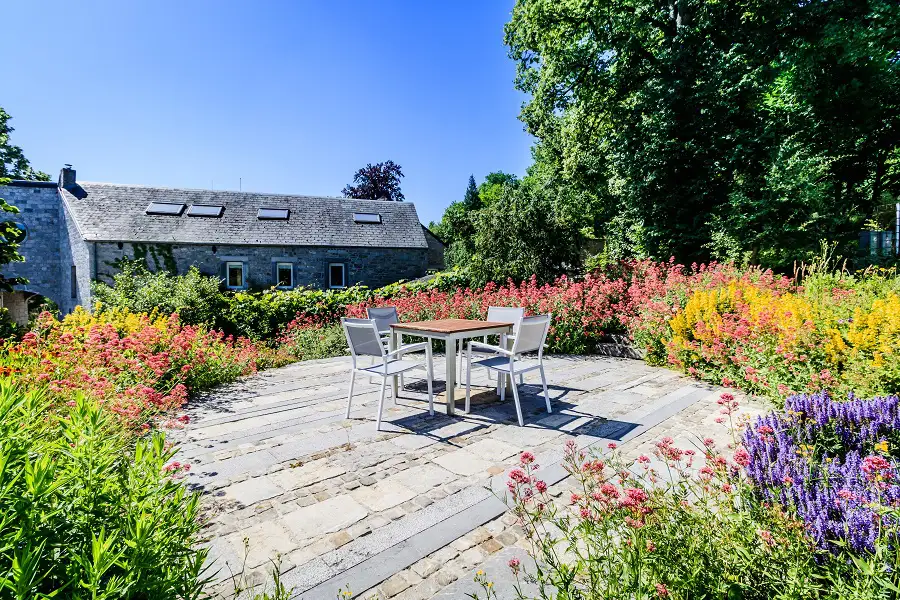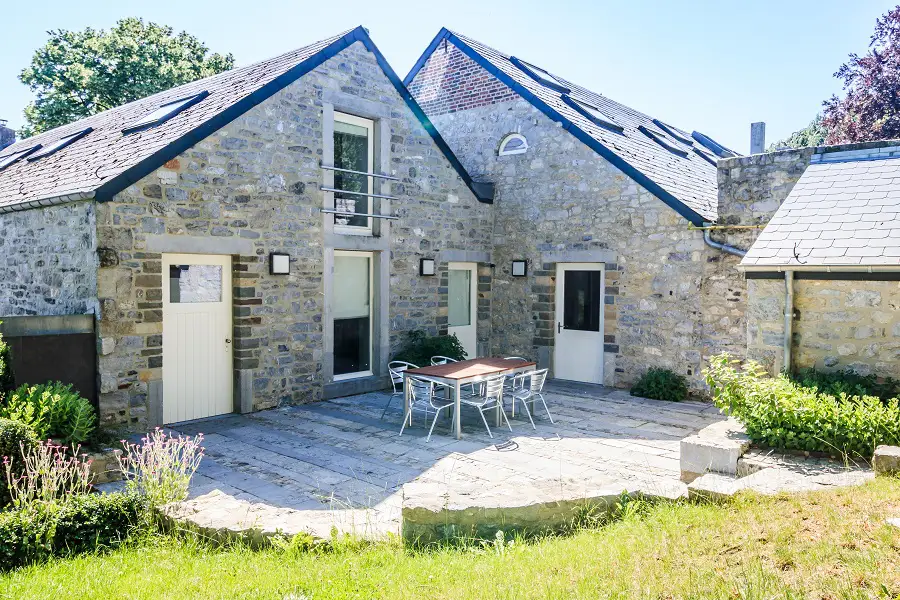 In the National Park between Sambre and Meuse, spacious and comfortable charming cottage for 9 people. It includes 3 cottages that communicate both internally and externally: Hellébore, Colchique, and Haute Roche 1 to create a very comfortable set for 8 to 9 people, with 4 bedrooms, 3 separate bathrooms + 1 toilet, an entrance, and a laundry room. Ideal for 3 couples who enjoy living together while maintaining privacy. Eco-friendly construction, low energy consumption. A domain in the heart of exceptional nature. Enjoy the beautiful east-facing terrace, equipped with garden furniture from March to November. A barbecue is available upon request. The buildings date back to the late 19th century. The spirit of the old stones has been preserved. Located on a private property of several hectares in Dourbes, the cottage offers a unique experience in the midst of nature. All windows open onto stunning views, with an exceptional setting in the heart of the park. Outdoor comfort and modern equipment. Wi-Fi, electric vehicle charging station, and private parking on site. Plus: games for children and adults (slide, small climbing wall, 2 football goals). There are numerous activities in the nearby area, marked trails for pedestrians and cyclists, museums, castles. A few nice restaurants nearby. In this cottage, you are 8km from the French border. The French Ardennes offer beautiful opportunities for tourists: greenway along the High Meuse for pedestrians and cyclists, historical sites with Charlemont and Rocroi, cruises on the Meuse starting from Givet, and of course for adrenaline enthusiasts, Terraltitude with its famous Fantasticable at 110 meters above the Meuse. For guests, upon request, a list of pedestrian walks and itinerary sheets (13 sheets) is available.
