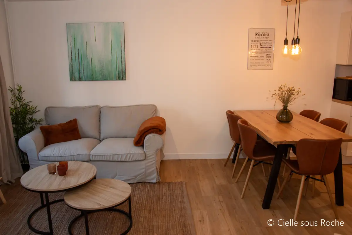Cielle Sous Roche cottage is a family-friendly and recently renovated cottage located in the heart of La Roche-en-Ardenne. It is built against the rock which gives it a unique touch. It is designed for 5 people and a baby cot. For your convenience, there is a private garage that can accommodate a car and several bikes. Parking is free on the street. Everything is provided in the kitchen to prepare delicious meals with family or friends. You also have board games for both kids and adults, a television, and a fireplace for cozy evenings. The very central location of the accommodation allows you to do everything on foot. You are just a few steps away from all shops and restaurants as well as the beautiful feudal castle. Nearby, a multitude of cultural or sports activities such as kayaking, rafting, pedal boating, adventure parks, etc. await you, as well as beautiful walks in nature. To help you in your choices, there is documentation available at the cottage. I am also available to advise you and answer your questions.