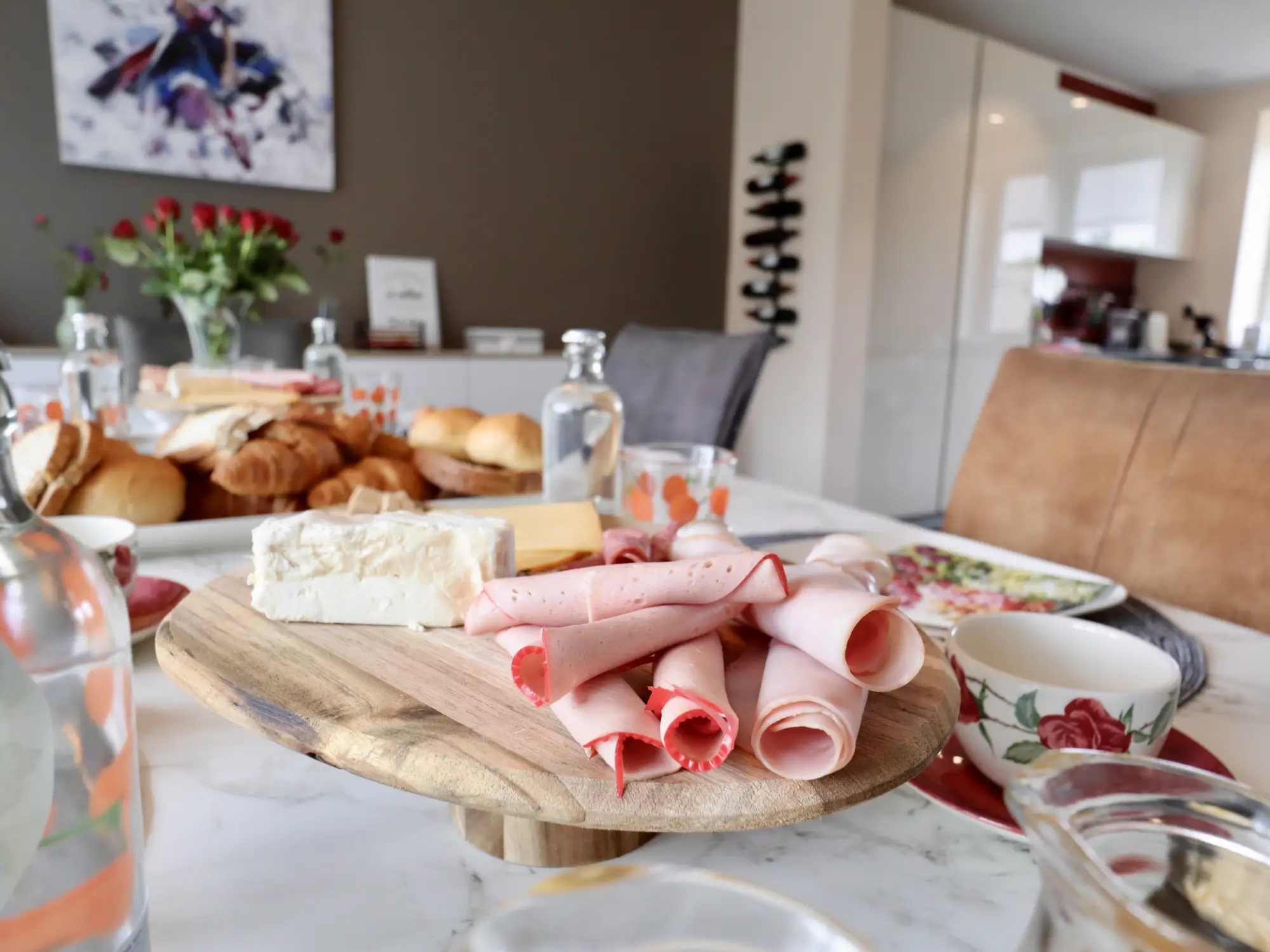 Après une bonne nuit de sommeil, un petit-déjeuner copieux fait maison et préparé avec des produits locaux est servi dans la salle à manger.