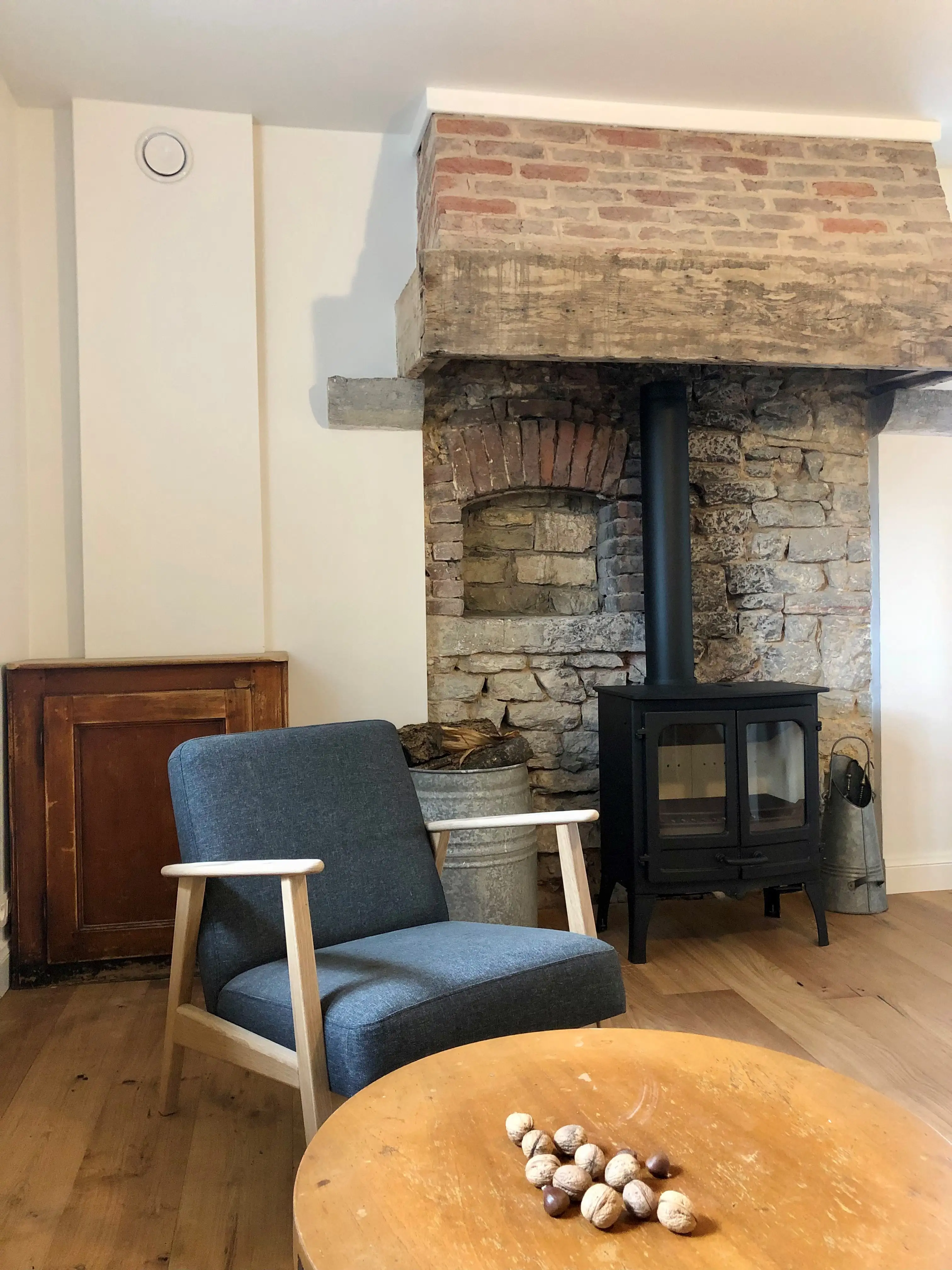 Derrière cette atmosphère enchantée se cache un confort chaleureux et réconfortant. Le vieil âtre y côtoie harmonieusement un poêle moderne, offrant une ambiance cocooning idéale pour se retrouver, quelle que soit la saison.