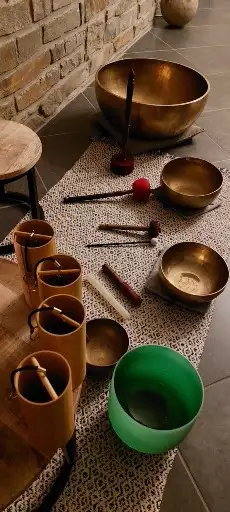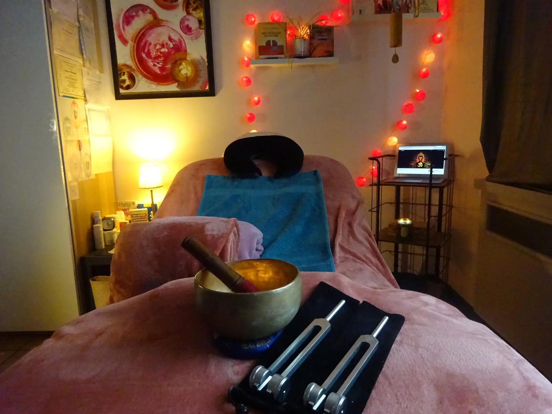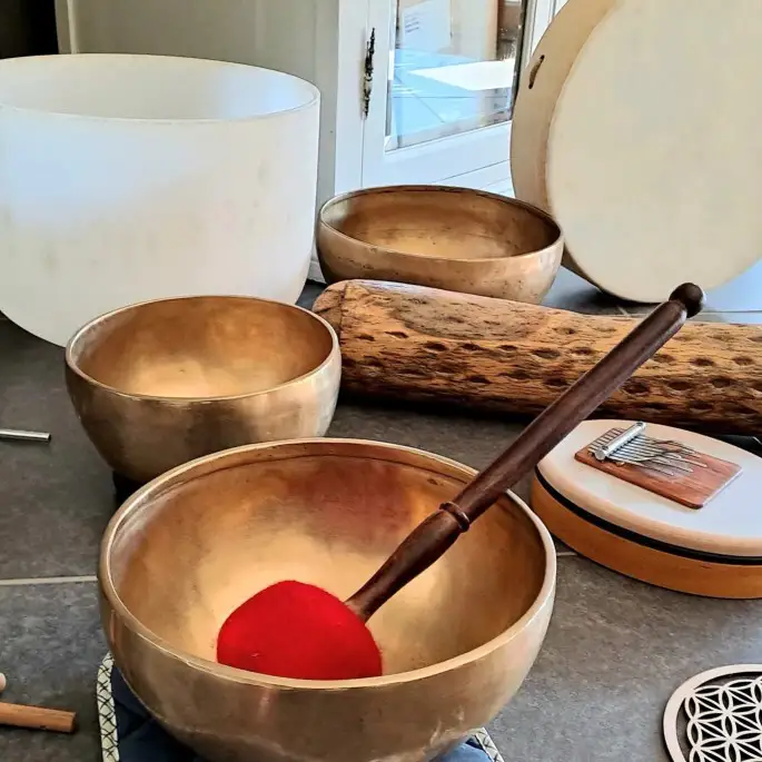 Christiane in haar benadering van gastvrijheid en het delen van kennis over ecologie en welzijn. U kunt loskoppelen en sleutels leren om uw stress te beheren via Mindfulness (MBSR) Voetreflexologie (MTC) en Tibetaanse kom die Chri.