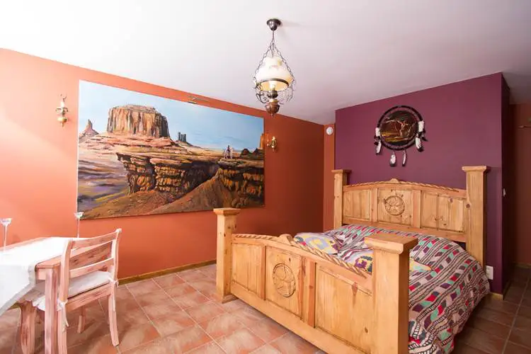 De locatie is volledig gewijd aan de Far West en beschikt over paarden die u de mogelijkheid bieden om het hele jaar door een paardrijtocht te boeken in onze prachtige omgeving. De twee gastenkamers “Monument Valley” en “Mine d’Or” zijn ingericht in “western”-stijl. Ze bevinden zich op de begane grond en hebben een eigen terras, een tweepersoonsbed, een badkamer (bubbelbad, wastafel, wc).