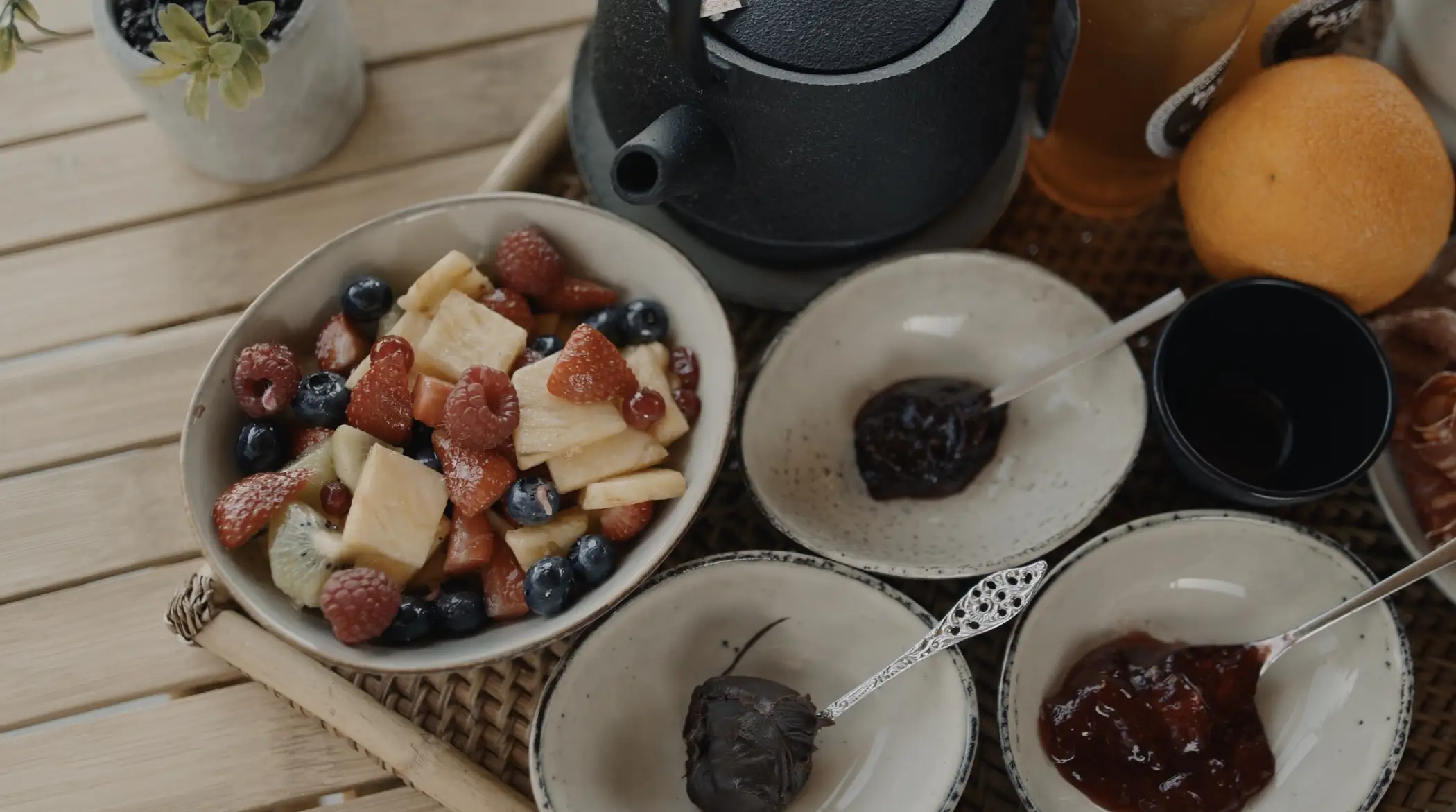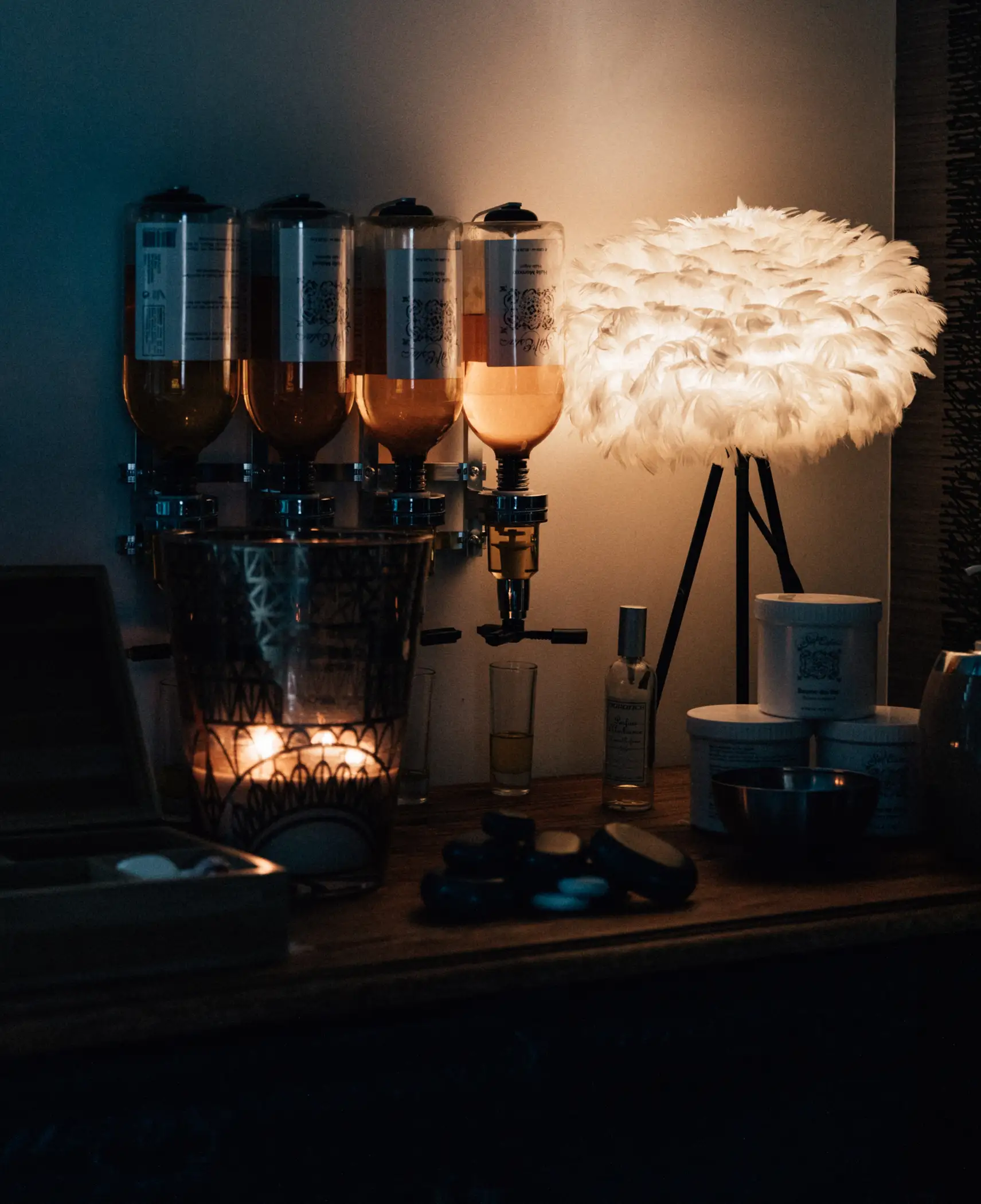 Handgemaakte voorwerpen en kleine decoratieve schatten zorgen voor een eenvoudige sfeer vol authenticiteit.