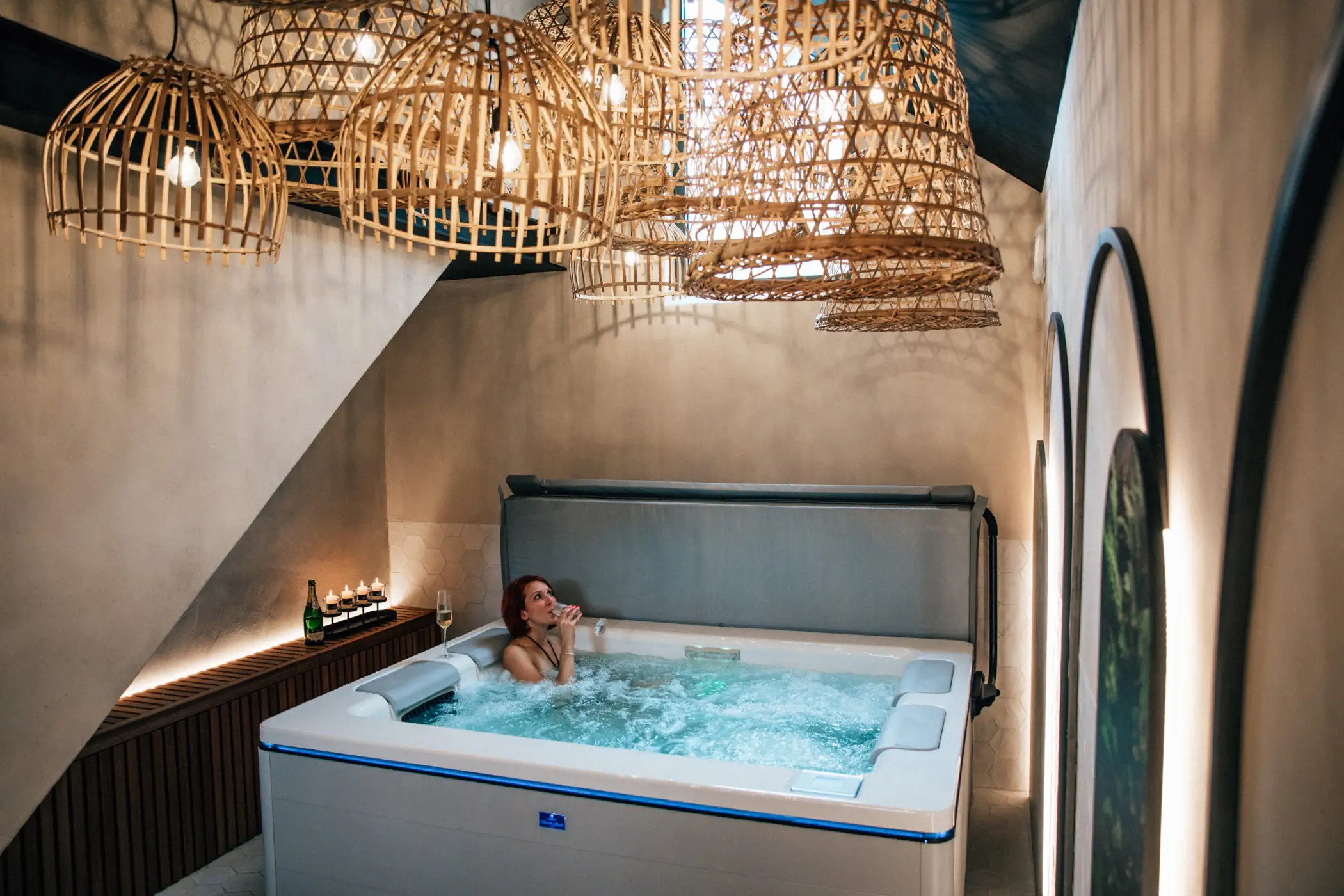 Op de begane grond beschikt u over een privé wellnessruimte met sauna, jacuzzi, tropische douche