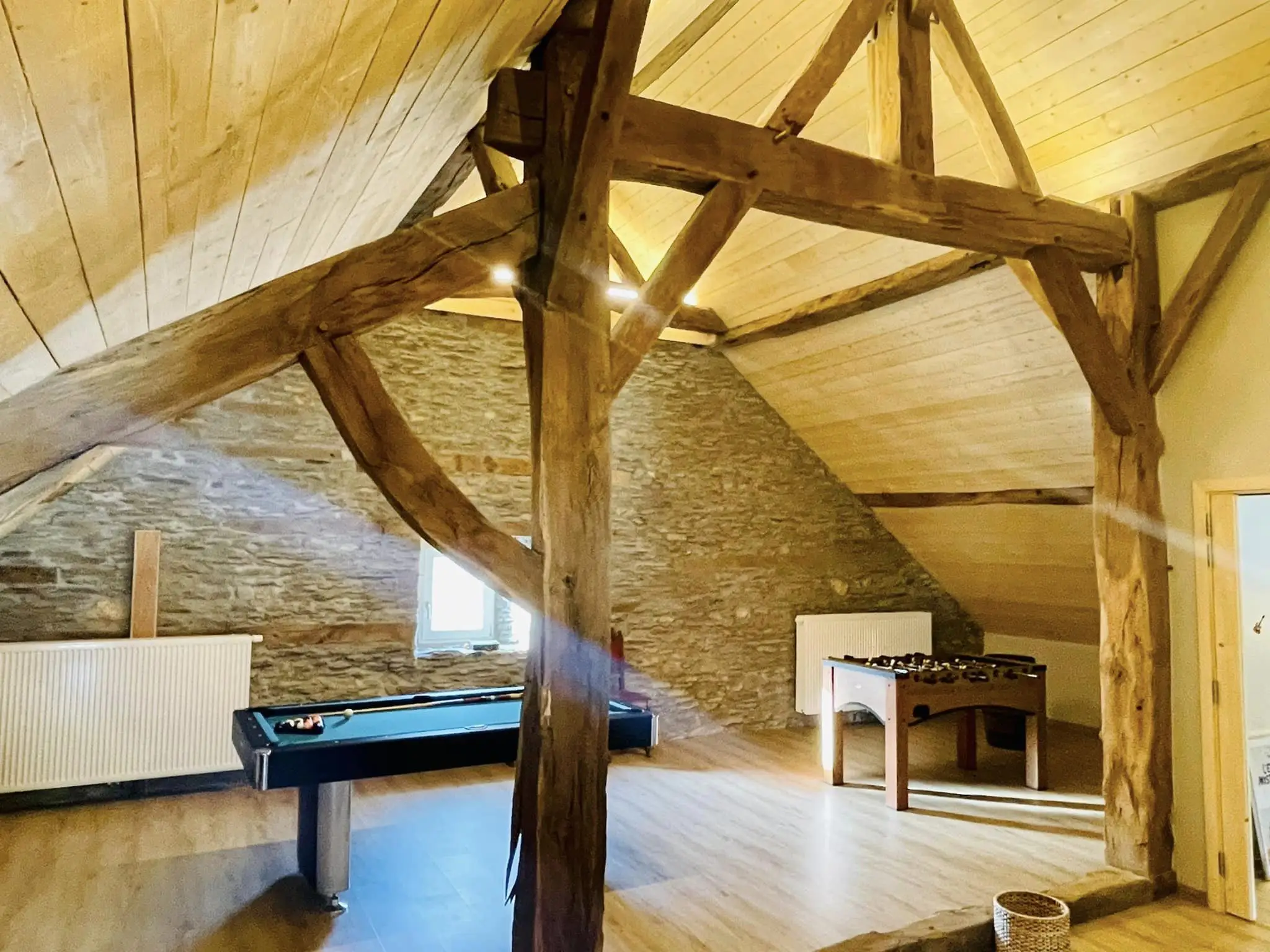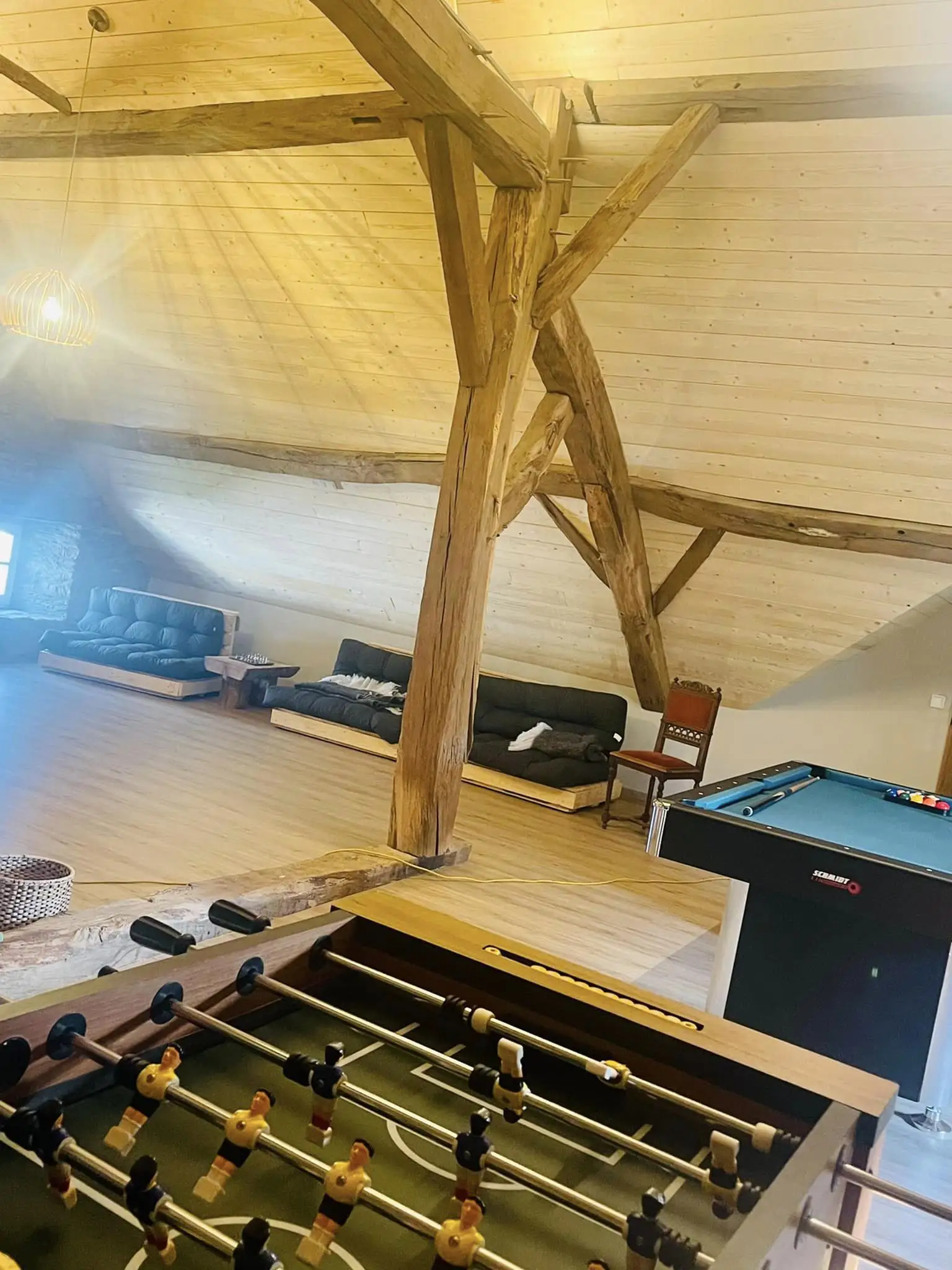De gîte heeft een omheinde binnenplaats met een volleybalveld (badminton), barbecue, verschillende buitenspellen en een kamer onder de schuur die is omgebouwd tot een speelkamer (kicker en tafeltennistafel) en berging (fietsen, enz.).