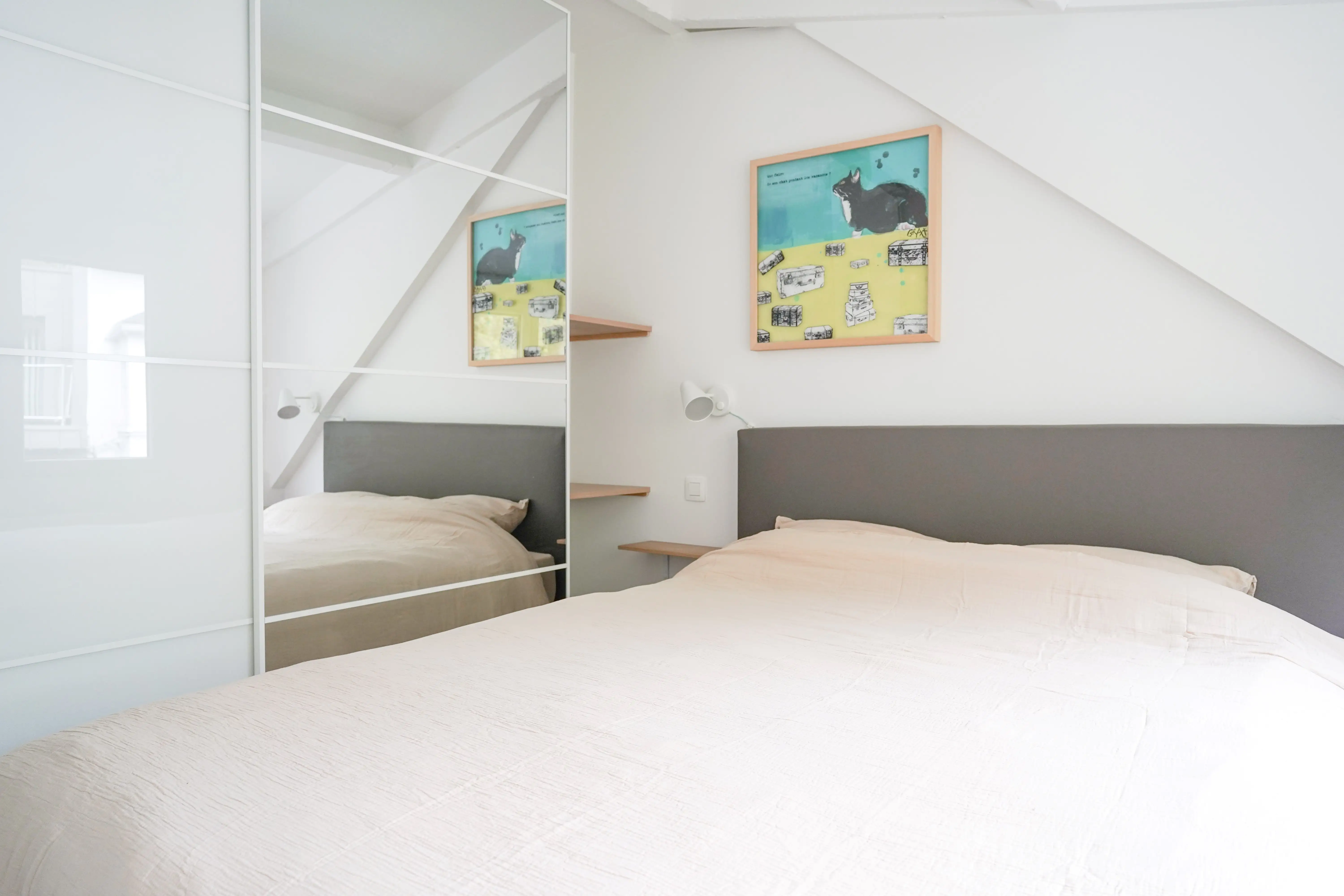 Het Riverside vakantiehuis is gevestigd in een authentiek kunstenaarshuis, een unieke plek doordrenkt van charme en creativiteit. Hier ademt elke hoek inspiratie: het huis herbergt een actief schilder- en graveeratelier, waar werken, gereedschappen en een levendige artistieke sfeer samenkomen. Men voelt onmiddellijk een bijzondere sfeer, tegelijkertijd rustgevend en stimulerend, die uitnodigt tot ontdekking en mijmering. Het zorgvuldig ingerichte appartement weerspiegelt deze artistieke ziel. Niets is aan het toeval overgelaten: de objecten, kleuren, texturen en materialen zijn met smaak en gevoeligheid gekozen. De visuele wereld is rijk, harmonieus en persoonlijk, waardoor een warme cocon ontstaat waar men zich meteen thuis voelt. Of u nu een kunstliefhebber bent, op zoek naar inspiratie of gewoon nieuwsgierig, deze accommodatie biedt meer dan alleen een verblijf: een echte ervaring, tussen comfort, schoonheid en creativiteit. Hier gaat het verblijf een beetje verder dan alleen de accommodatie. Ik verwelkom u in een rustige en verzorgde omgeving, waar u kunt ontspannen en even tot rust kunt komen. Een kopje koffie in mijn atelier, een eenvoudig gesprek, een attente daad: dat is vaak wat bijblijft. Mijn vakantiehuis is bedoeld voor degenen die op zoek zijn naar rust, licht en een echt moment voor henzelf. Welkom.