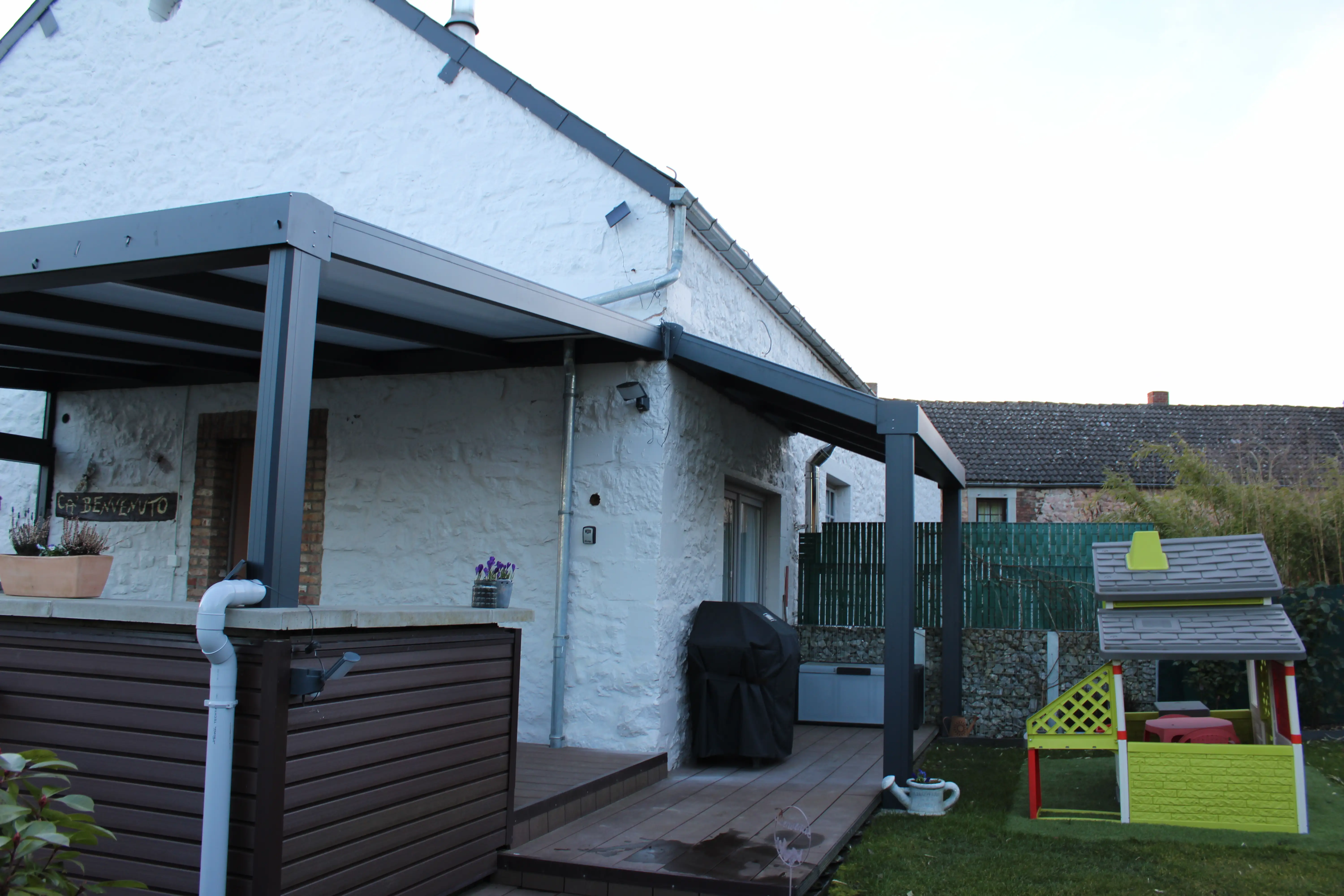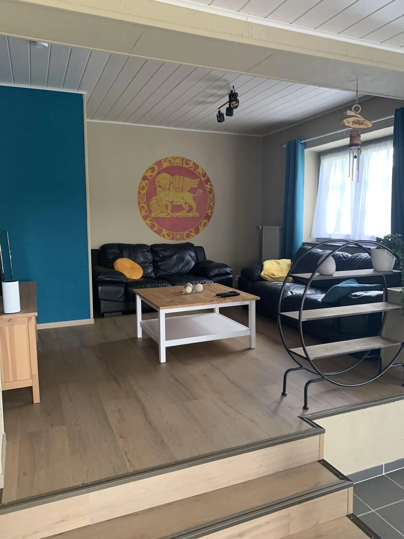 Omdat we zijn vader wilden eren, besloten we onze gîte ‘Ca’ benvenuto’ te noemen en de inrichting een Italiaanse toets te geven. Daarom hebben we de leeuw op de vlag van de regio Veneto in de woonkamer getekend..