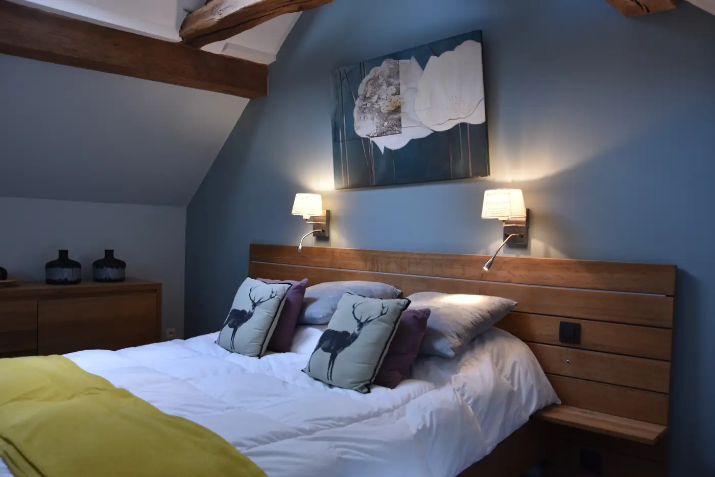 Terwijl de eerste gîte “La Romaine” een landelijke stijl benadert, combineert de tweede gîte “G’Ardenne Blue” traditie en moderniteit. De oude houten balken zijn gerestaureerd en lopen door de nachthal, de slaapkamers en de badkamer. De keuken is geplaatst in een prachtige volledig glazen uitbouw.