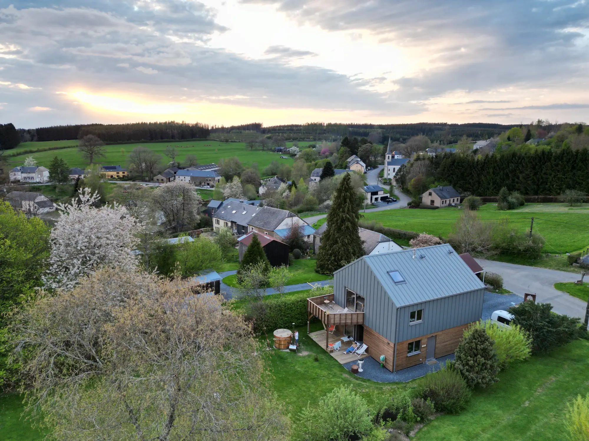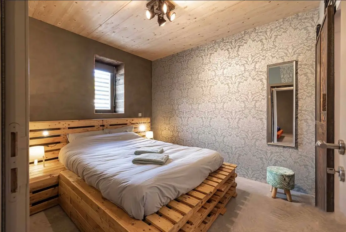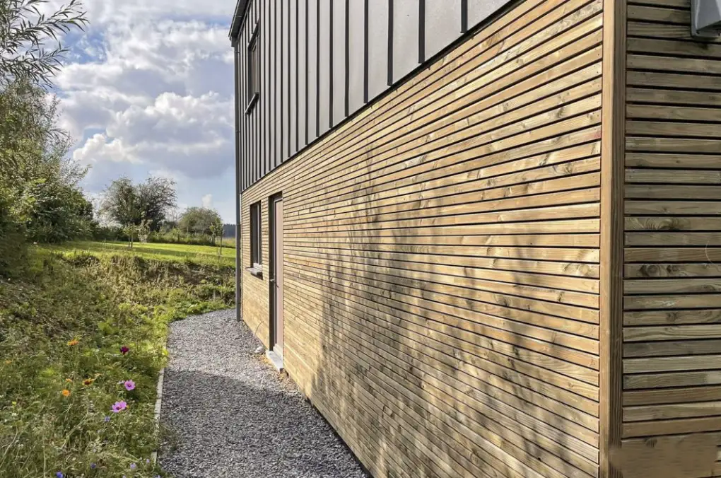 Charmante vakantiewoning voor 1 tot 4 personen in de Ardennen, in het hart van het Anlierbos. Gelegen in Vlessart, een typisch Ardens dorp, biedt de HirschenHof accommodatie op basis van natuurlijke materialen (hout – stro – klei) voor een uitzonderlijk thermisch, hygrometrisch en akoestisch comfort dat u een echt gevoel van welzijn zal geven. U verblijft in het hart van het natuurpark Haute Sûre Forêt d’Anlier, aan de poorten van het natuurpark Gaume, op 40 km van Luxemburg, op 25 km van Bastogne,… De twee tweepersoonskamers, een met een groot tweepersoonsbed en de andere met een standaard tweepersoonsbed, hebben elk een eigen badkamer. De parkeergelegenheid en de ligging op de begane grond zorgen voor een gemakkelijke toegang tot de vakantiewoning voor iedereen, inclusief uw huisdier, en is rookvrij. Buiten verwelkomt het houten terras een BBQ Plancha om van te genieten en daarna te ontspannen op de ligstoelen, te genieten van de warmte van het Scandinavische bad.