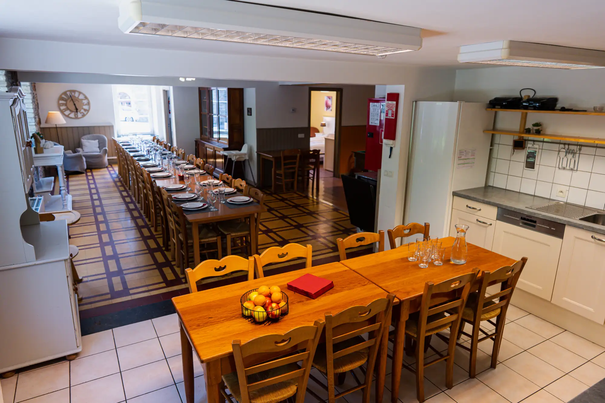 Le Val Fleuri Ontdek deze comfortabele vakantiewoning voor 32 personen, aan de waterkant, in Vresse-sur-Semois, in de provincie Namen, in het hart van de Ardennen. Met zijn 10 slaapkamers en 7 badkamers is dit de ideale vakantiewoning om met een groep te verblijven in een regio vol ontdekkingen met adembenemende natuur. De vakantiewoning ligt aan de oever van de Semois. Geniet van de ruime binnenruimtes en de tuin met zonnig terras. Het is mogelijk om de vakantiewoning voor 16 personen te boeken tegen een gereduceerd tarief (op aanvraag). Op de begane grond vindt u een grote woonkamer met houtkachel, een gezellige eetkamer, een biljartruimte en een volledig uitgeruste keuken. Een slaapkamer, twee badkamers, twee toiletten en een wasruimte completeren de verdieping. Buiten wachten een terras van 40 m² en een grote privétuin van 1200 m² op u, met barbecue, meubilair, schommel, tafeltennis, volleybal-badmintonveld en privéparkeergelegenheid. De eigenaar is uit de regio en kan u gemakkelijk adviseren over activiteiten in de omgeving van Vresse-sur-Semois. De rivier de Semois stroomt op 150m van het pand, en het centrum van Vresse-sur-Semois ligt op slechts 50m afstand. De Semois doorkruist de schaduwrijke landschappen bezaaid met bossen en natuurreservaten in de regio. Veel wandel-, fiets-, paardrij- en kajaktochten zijn te ontdekken, zoals bijvoorbeeld de wandeling van de legendes in het dorp. Vergeet niet om Bouillon en zijn kasteel te bezoeken. Studentenfeesten, vrijgezellenfeesten en grote feestelijke bijeenkomsten zijn niet toegestaan. Deze vakantiewoning is de ideale plek om onvergetelijke momenten te delen, te midden van ongerepte natuur in het hart van de Ardennen.