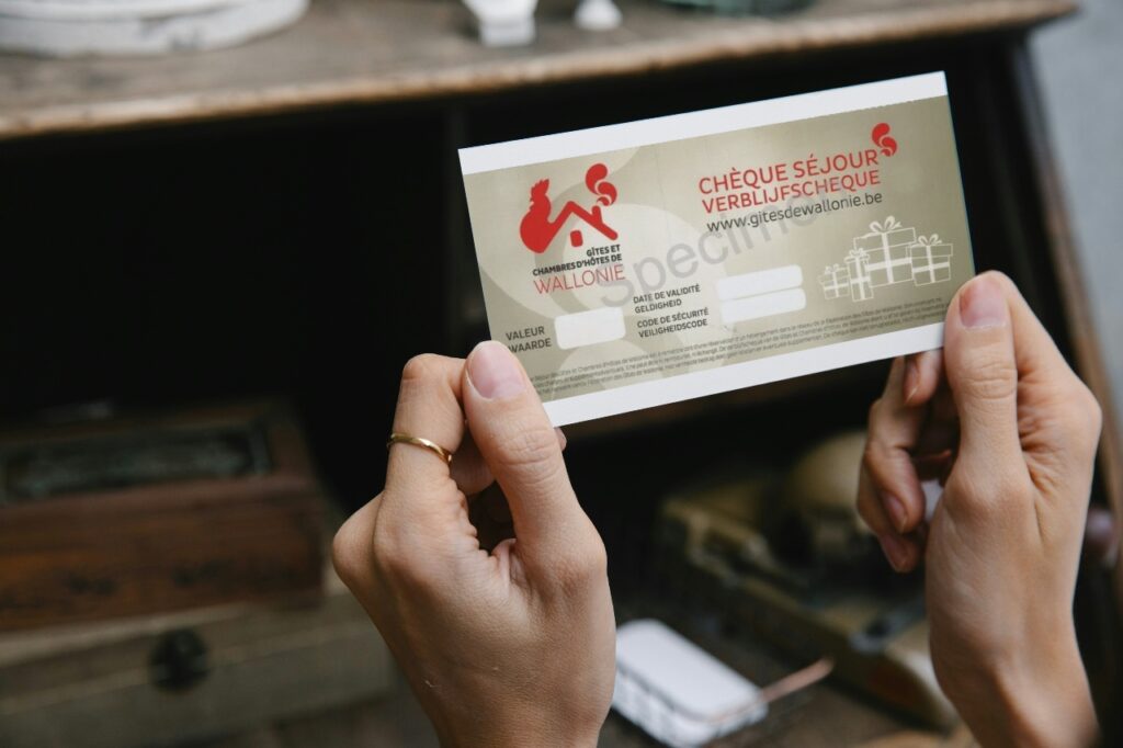 Chaque année, les Gîtes et Chambres d’hôtes de Wallonie éditent des chèques-séjours. Ces chèques sont commandés par des touristes ou édités pour des concours organisés avec des médias.